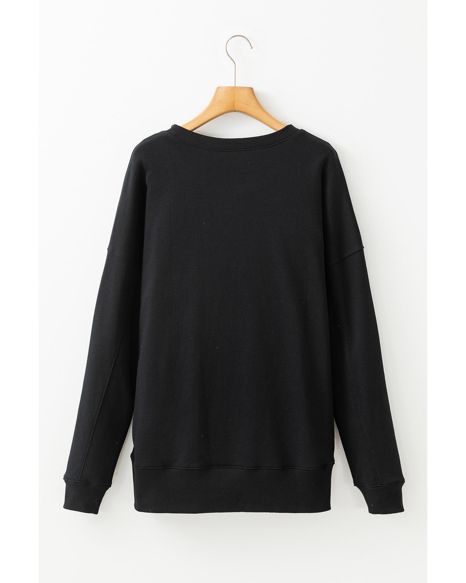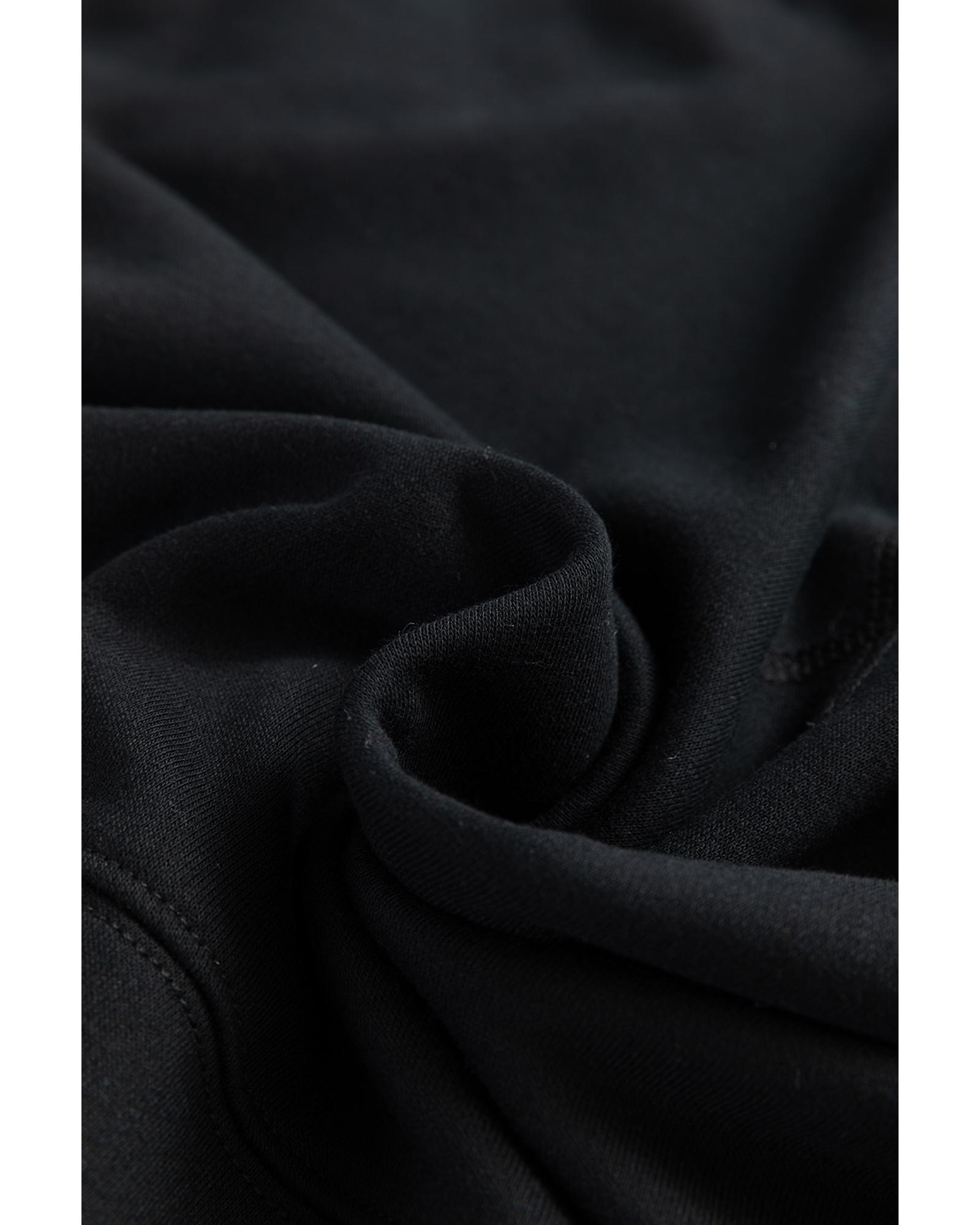 Black Drop Shoulder Crisscross Stitching Pocketed Loose Sweatshirt – L