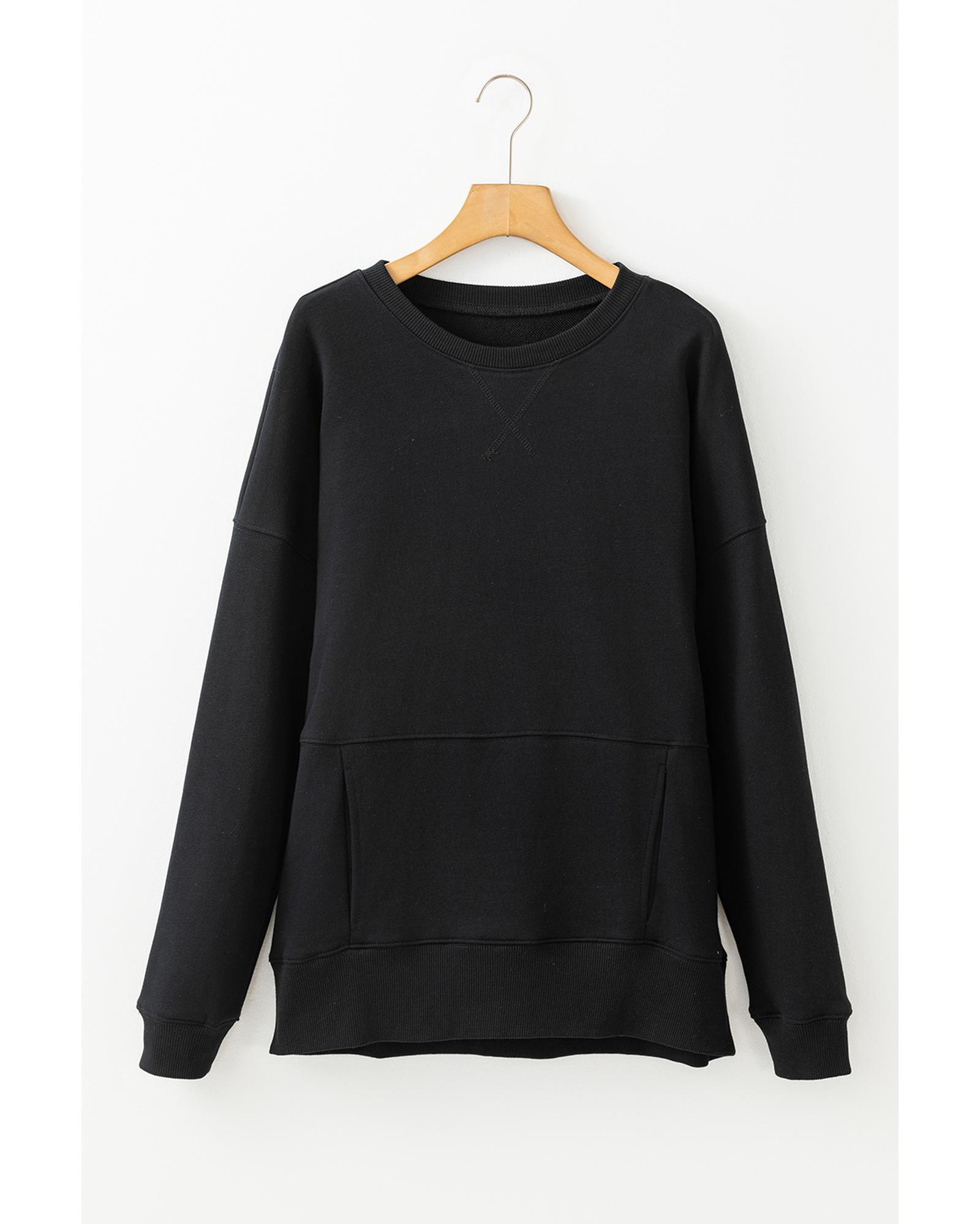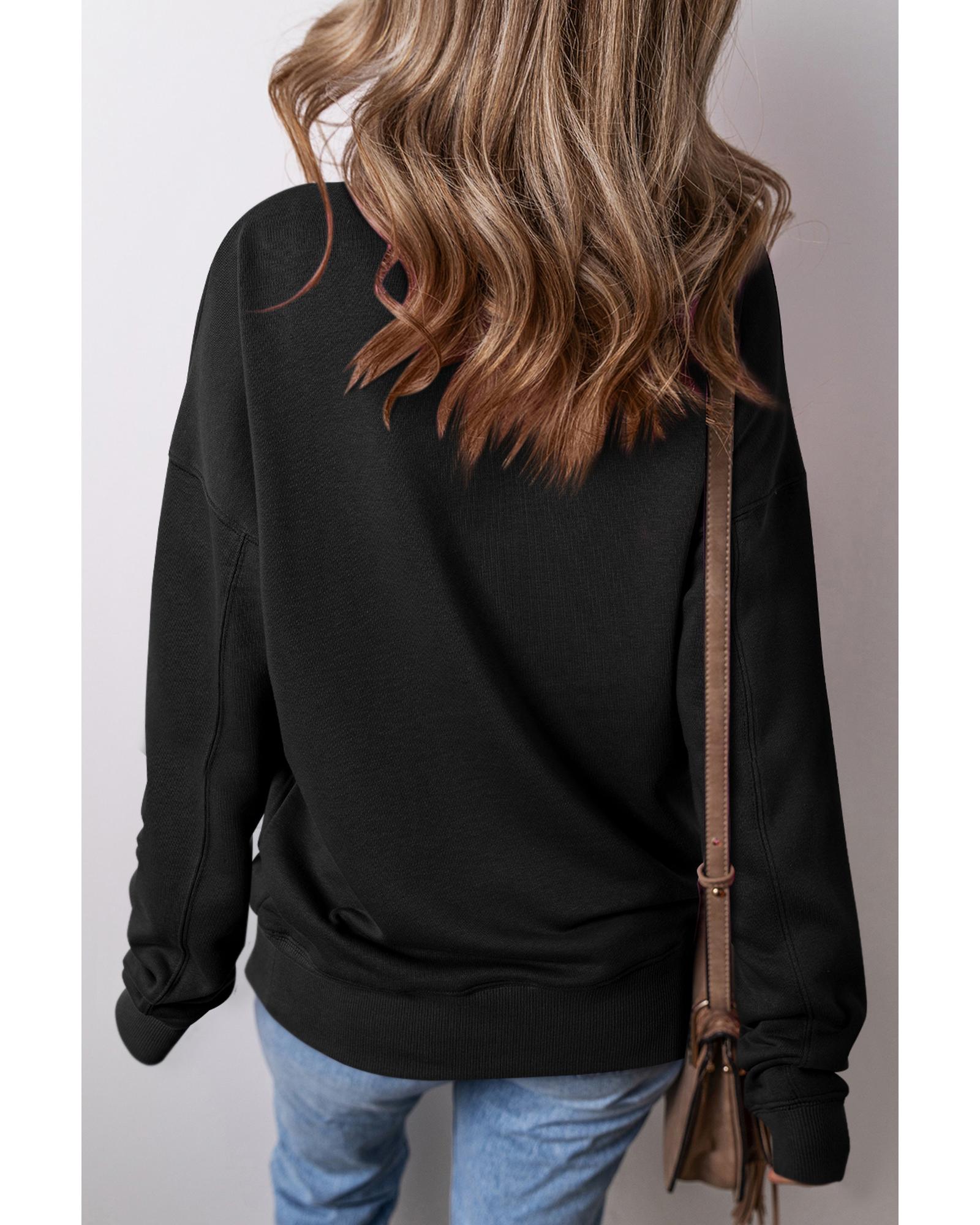 Black Drop Shoulder Crisscross Stitching Pocketed Loose Sweatshirt – XL