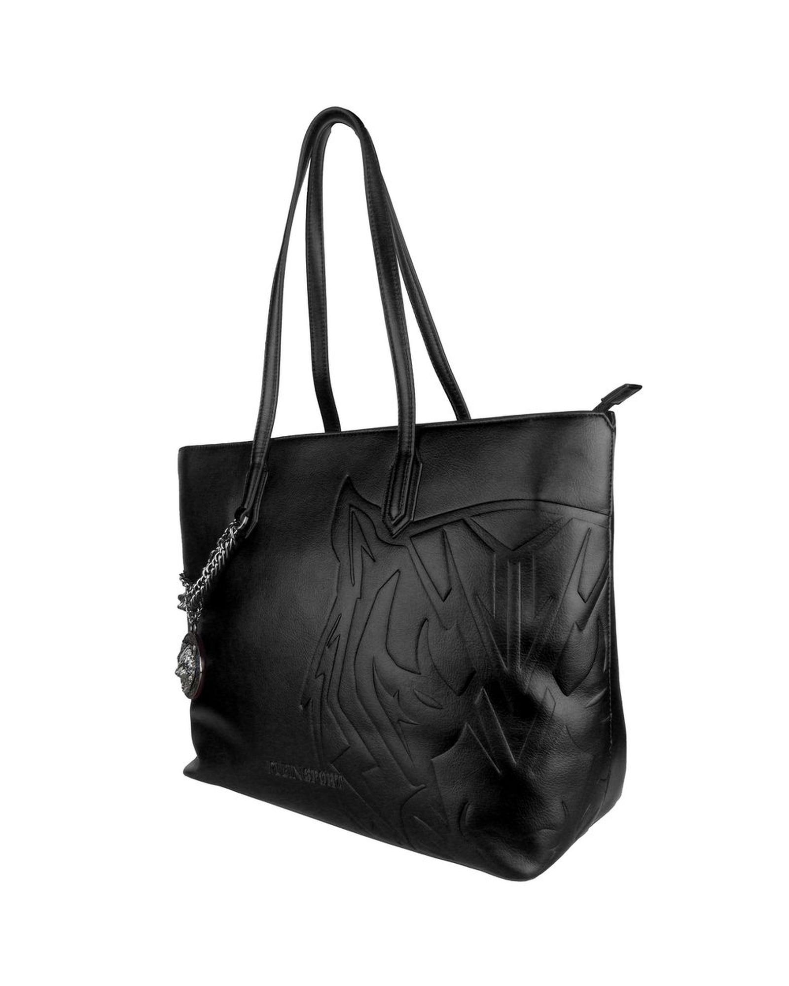 Black Eco-Leather Plein Sport Shopping Bag with Chain Detail One Size Women