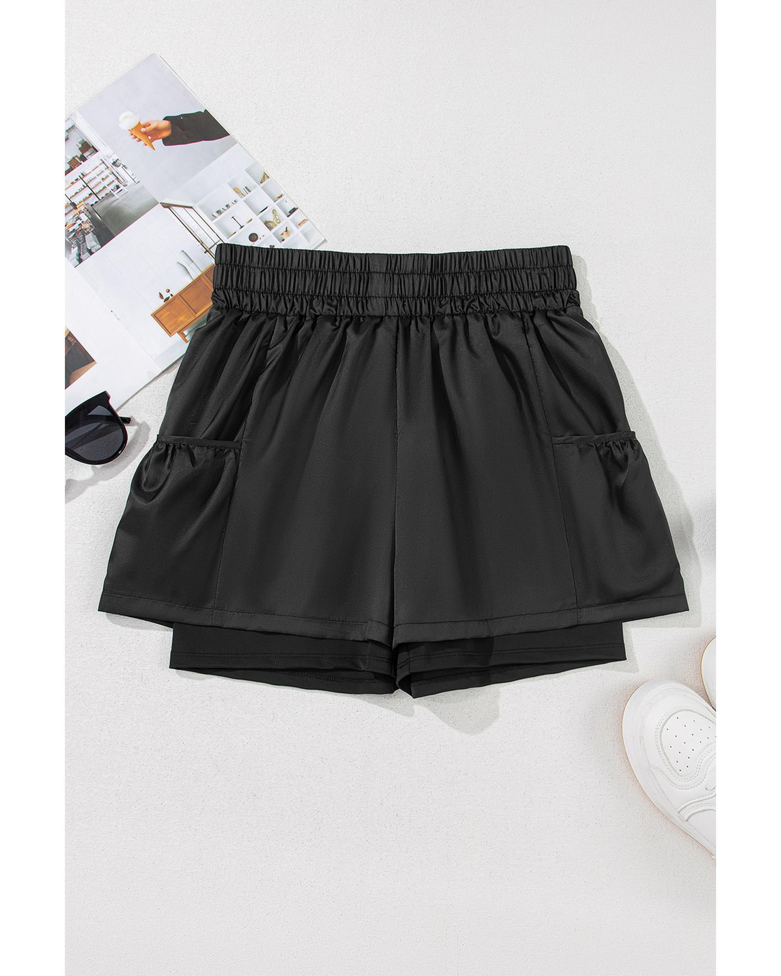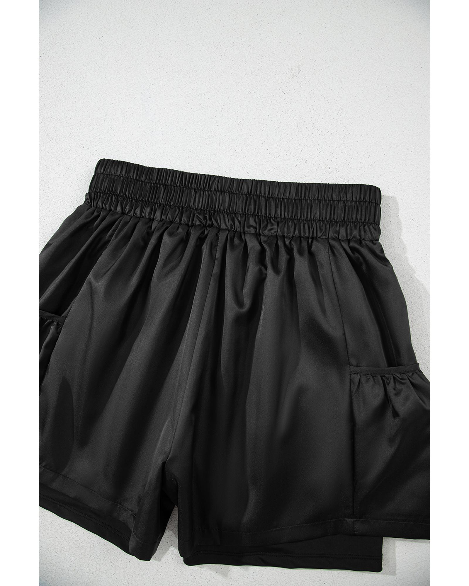 Black Elastic High Waist Pocketed Casual Shorts – S