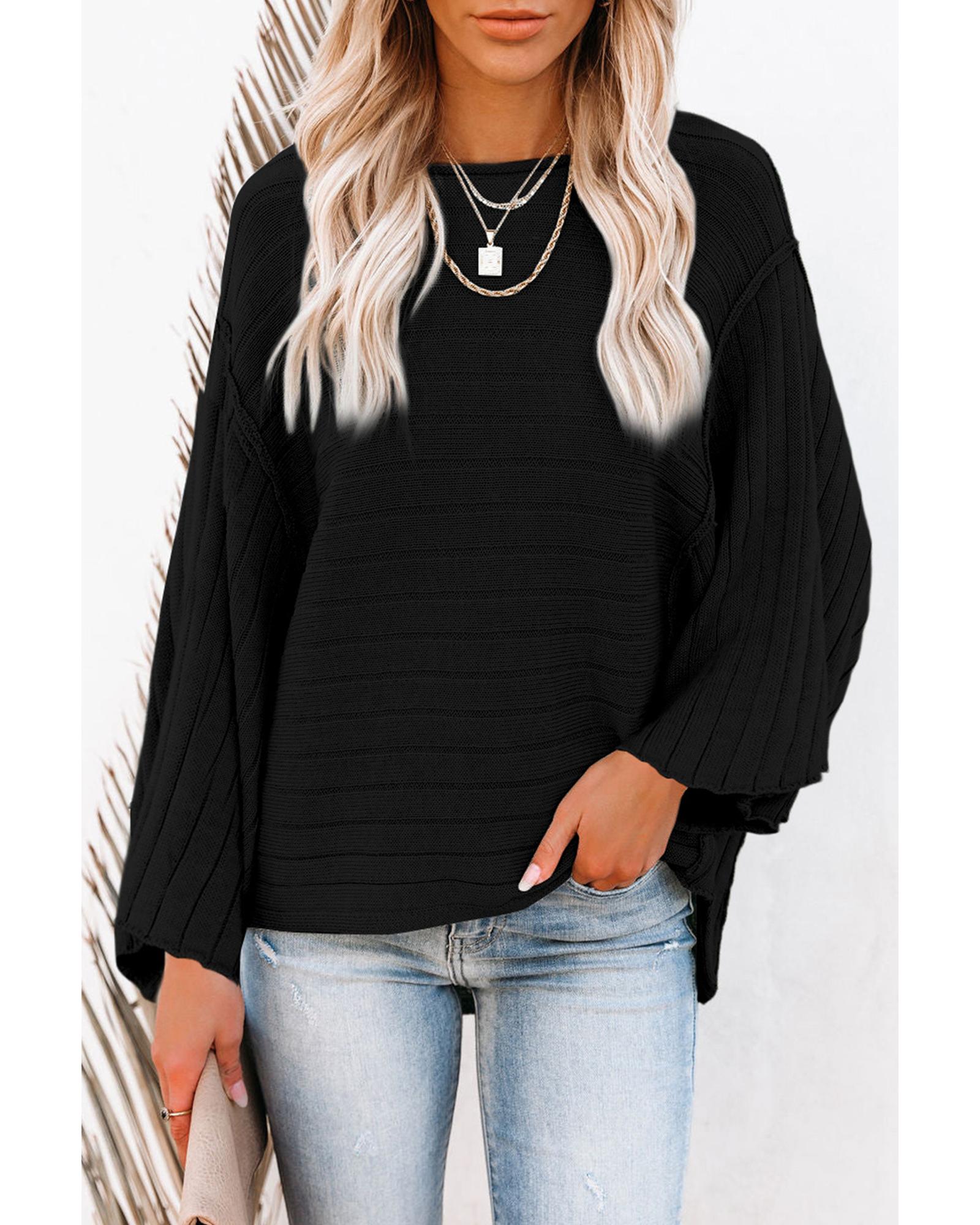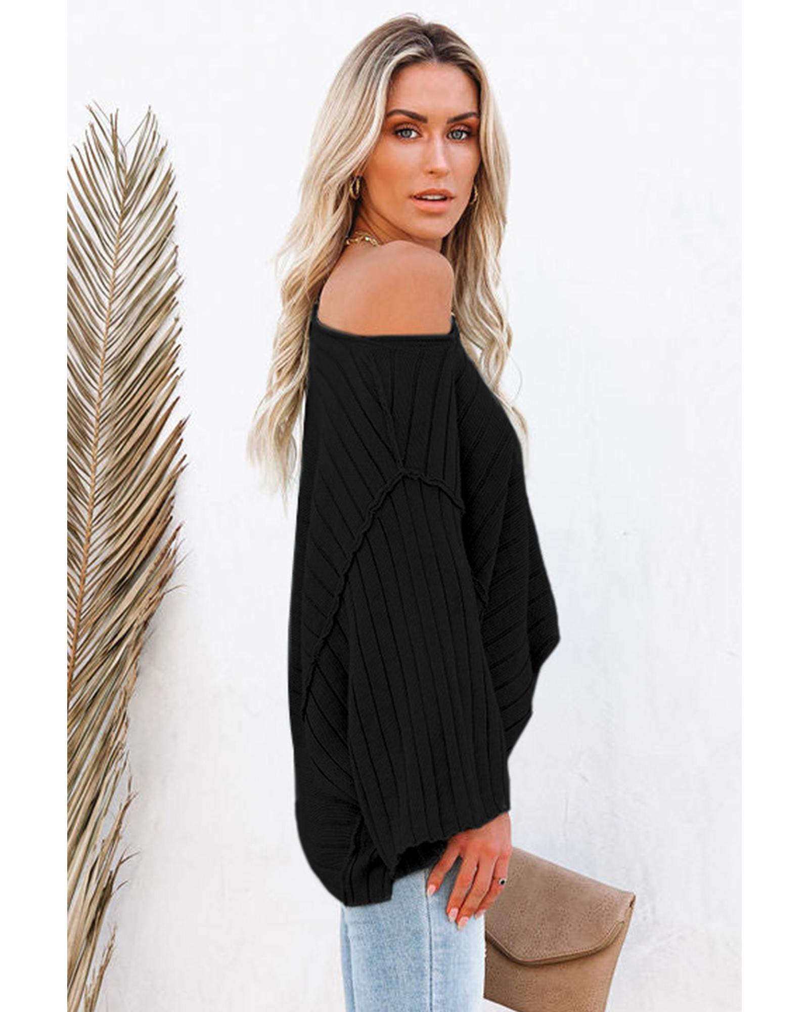 Black Exposed Seam Ribbed Knit Dolman Top – L