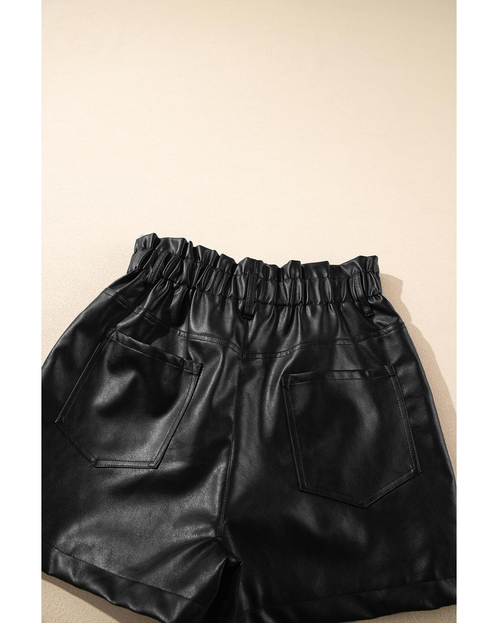 Black Faux Leather Paper Bag Waist High Rise Shorts – M