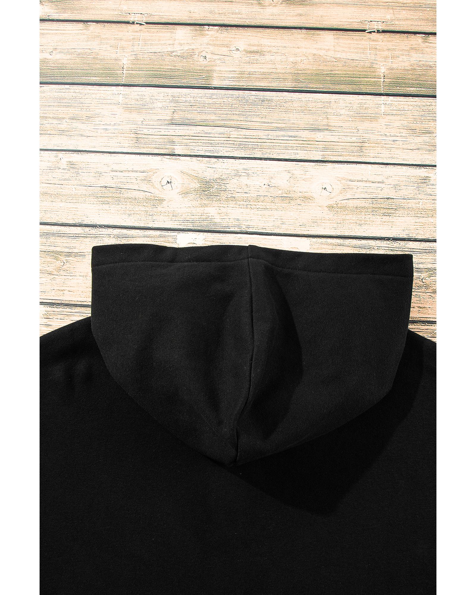 • Black Fleece Lined Half Zipper Kangaroo Pockets Loose Hoodie