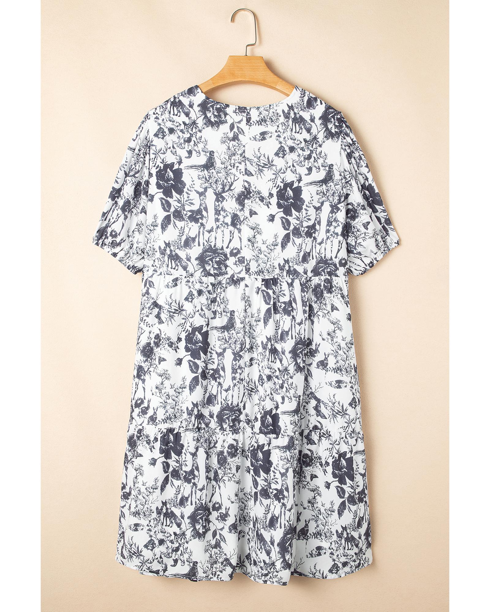 Black Floral Print Bow Detail Puff Sleeve Plus Size Midi Dress – 1X