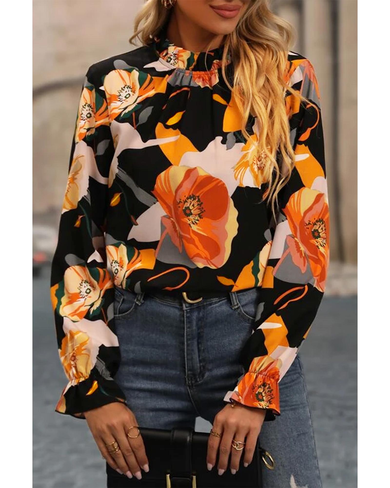 - Mock neck ruffled long sleeves and keyhole detail on the back