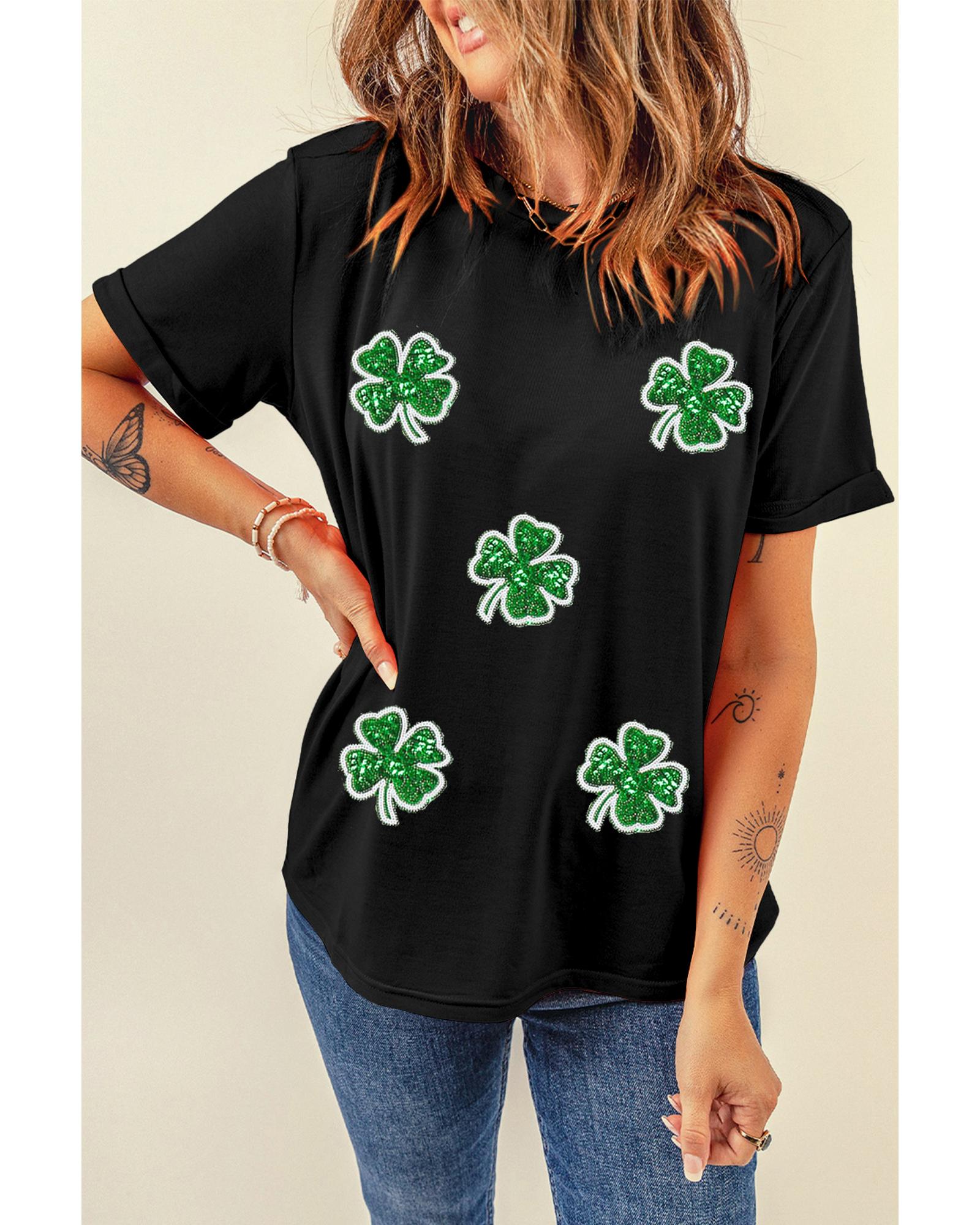 Black Four Leaf Clover Graphic St. Patricks Crewneck Tee – M