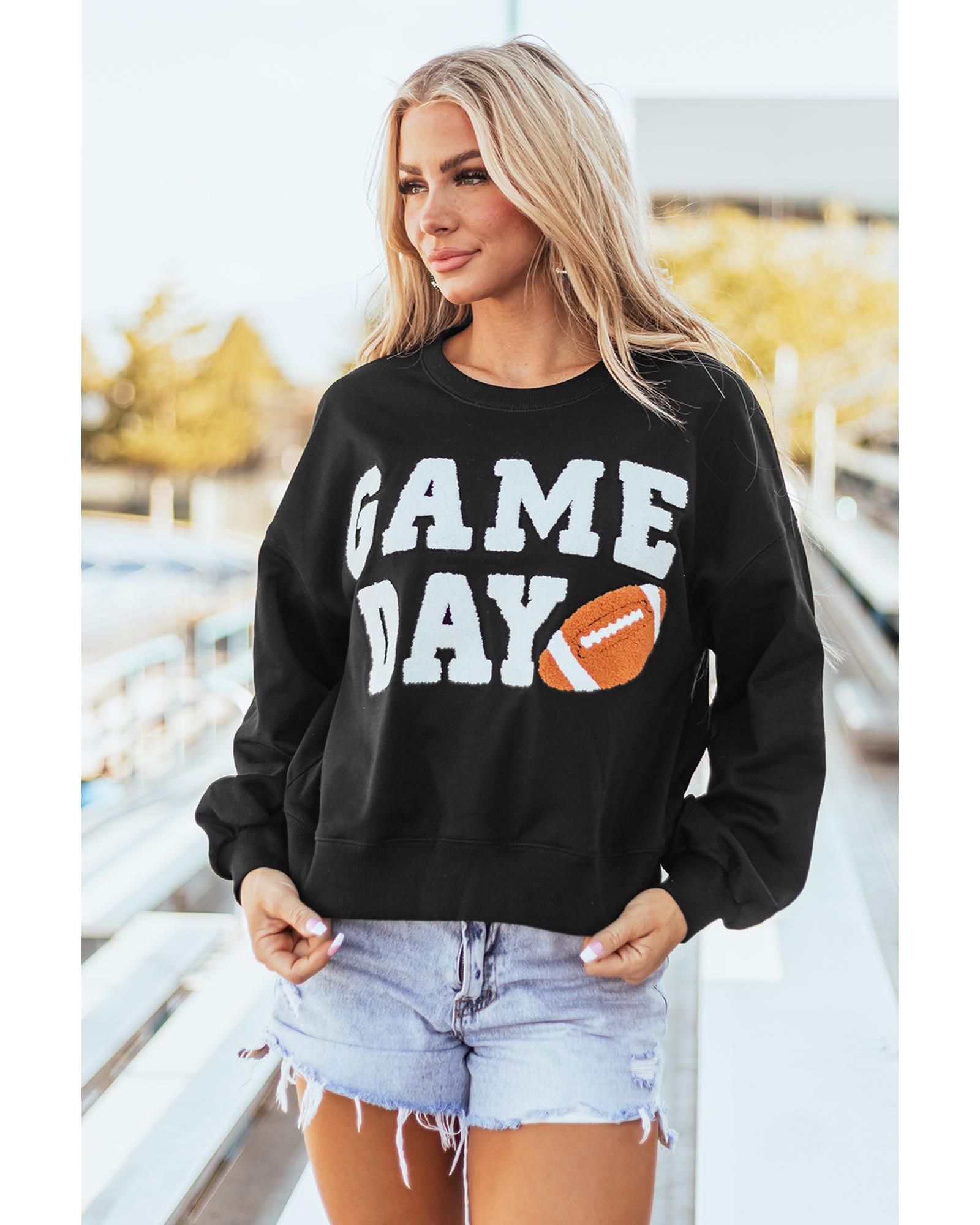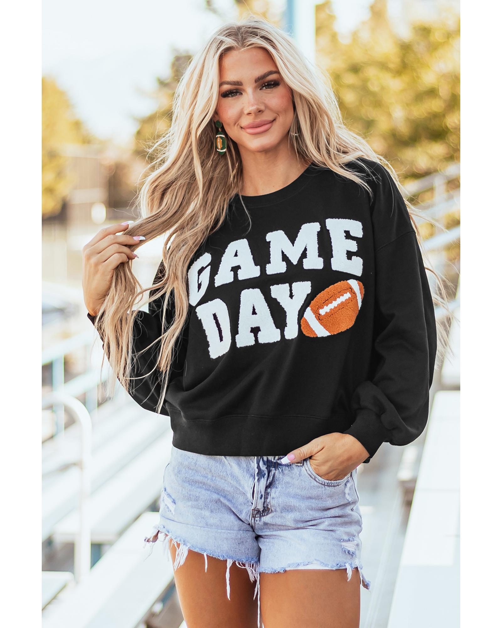 - Black GAME DAY Graphic Varsity Pullover Sweatshirt