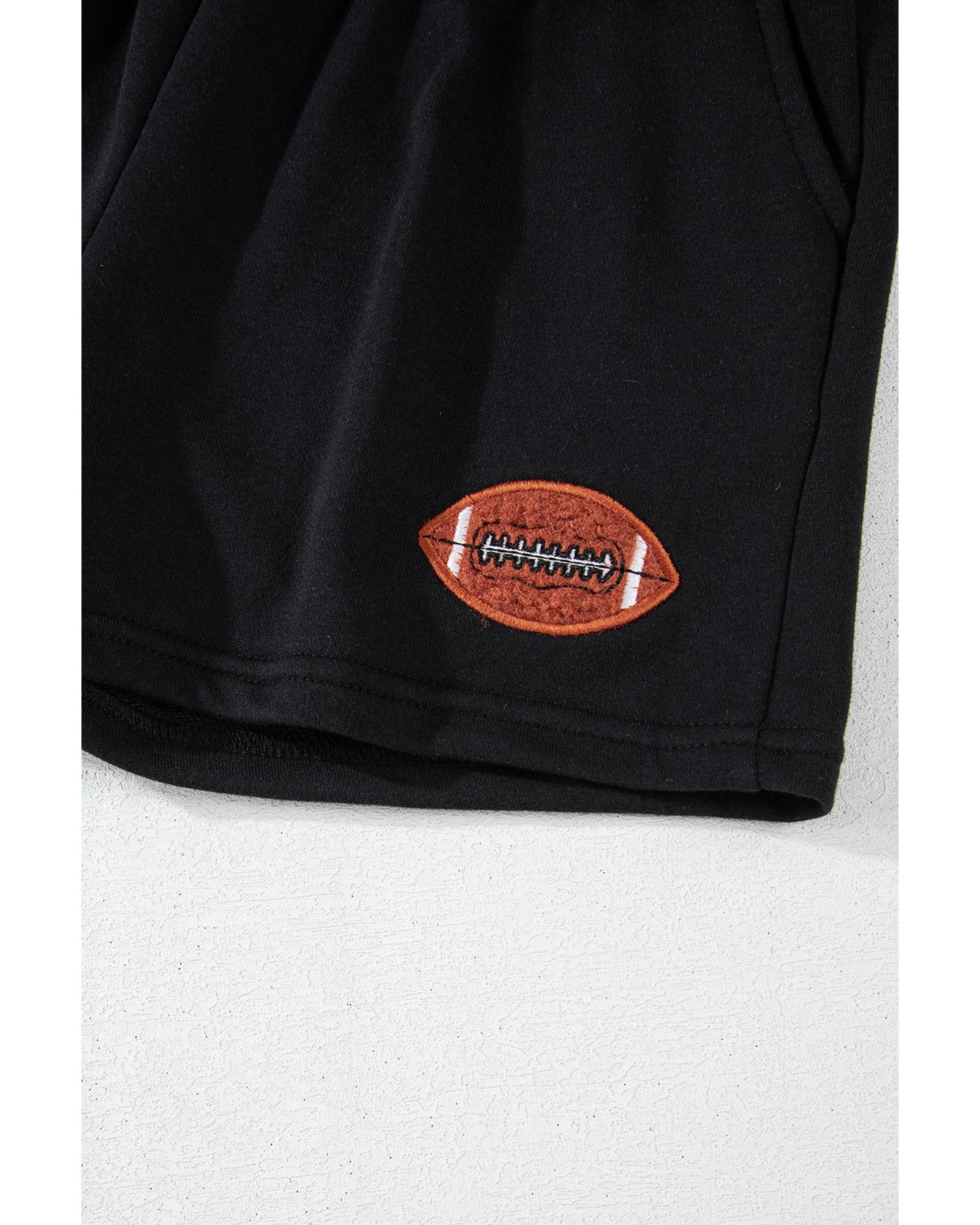 Black GAME DAY Rugby Football Graphic Pullover and Shorts Casual Outfit – S