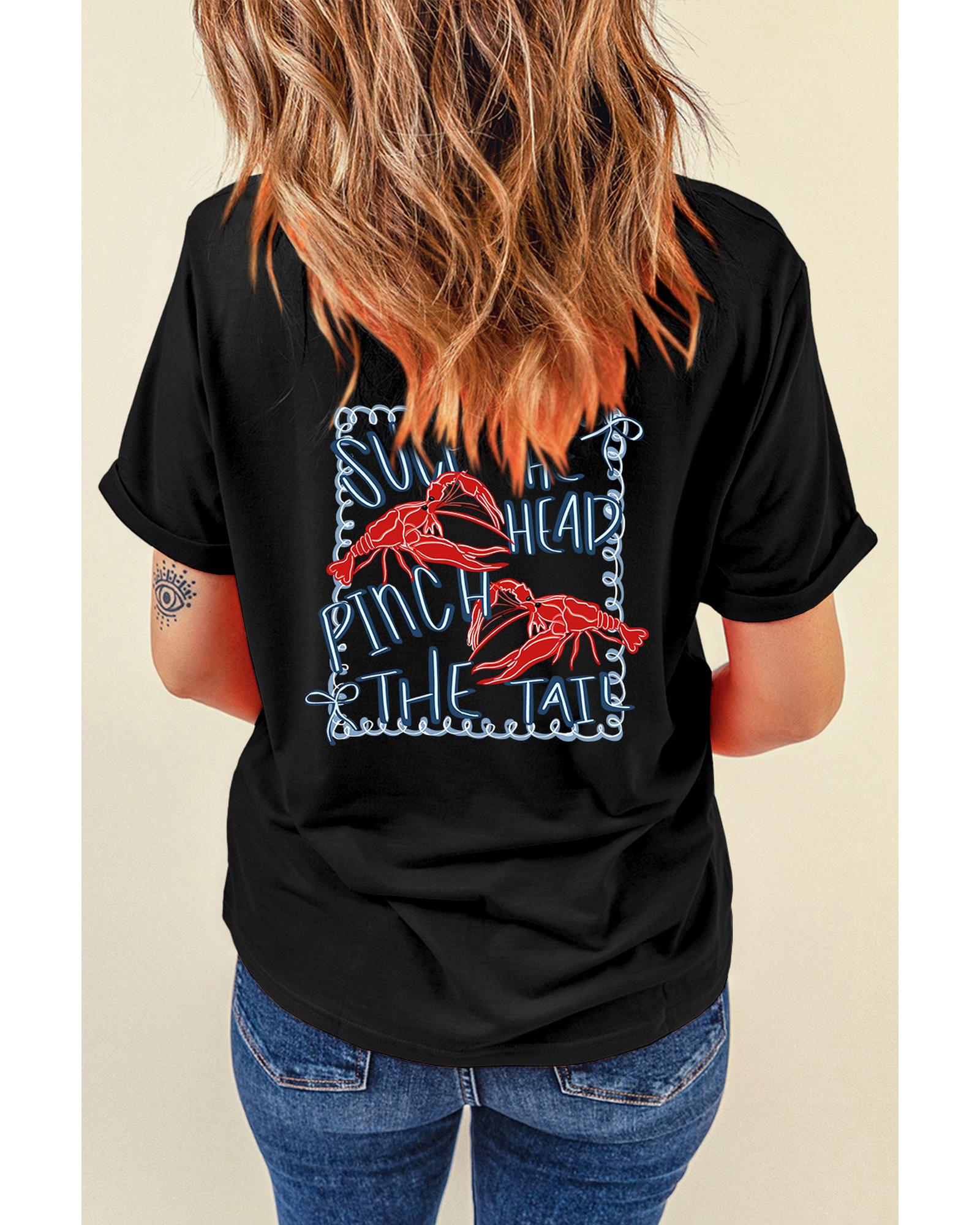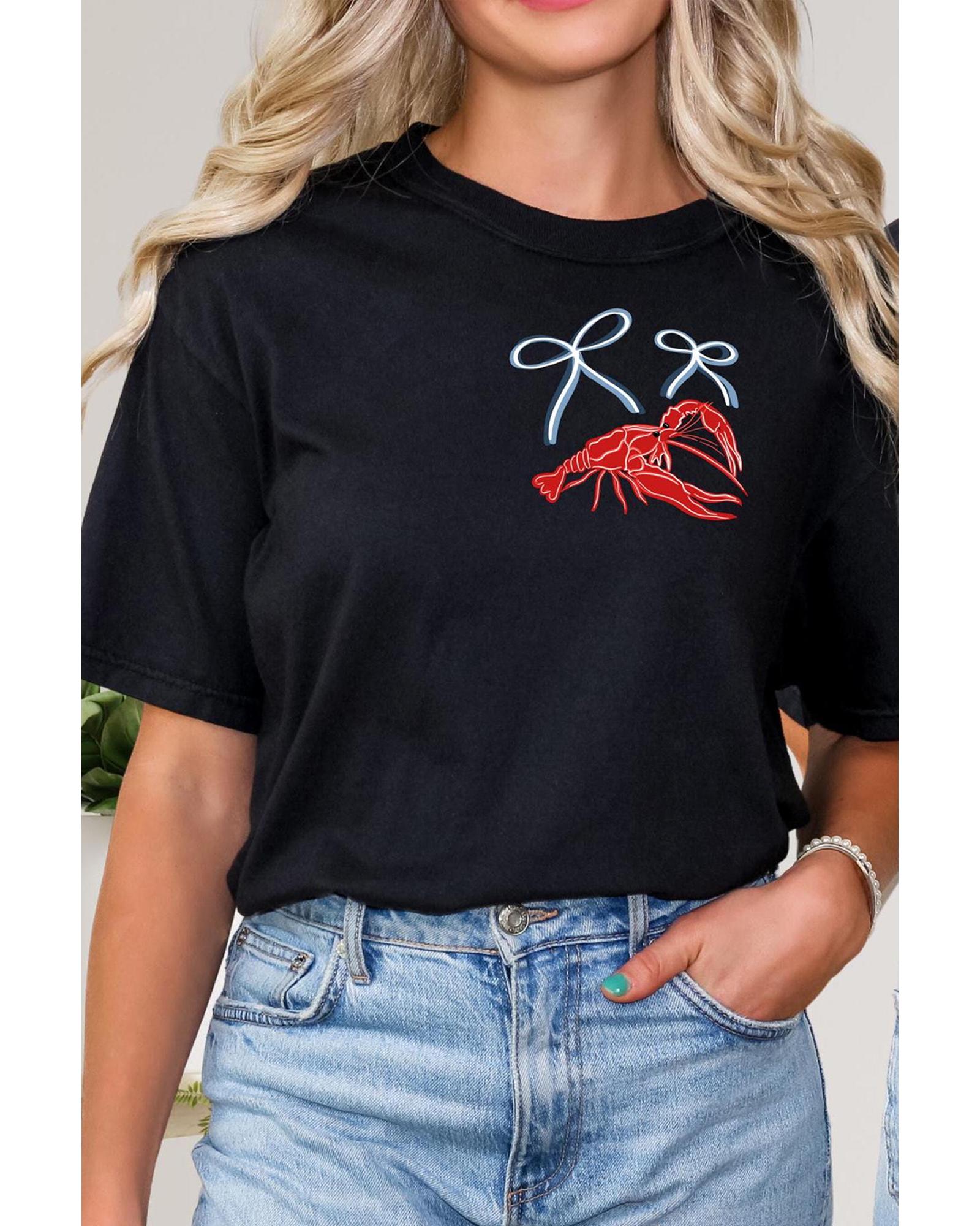 Black Girlie Bow Crawfish Printed T Shirt – S