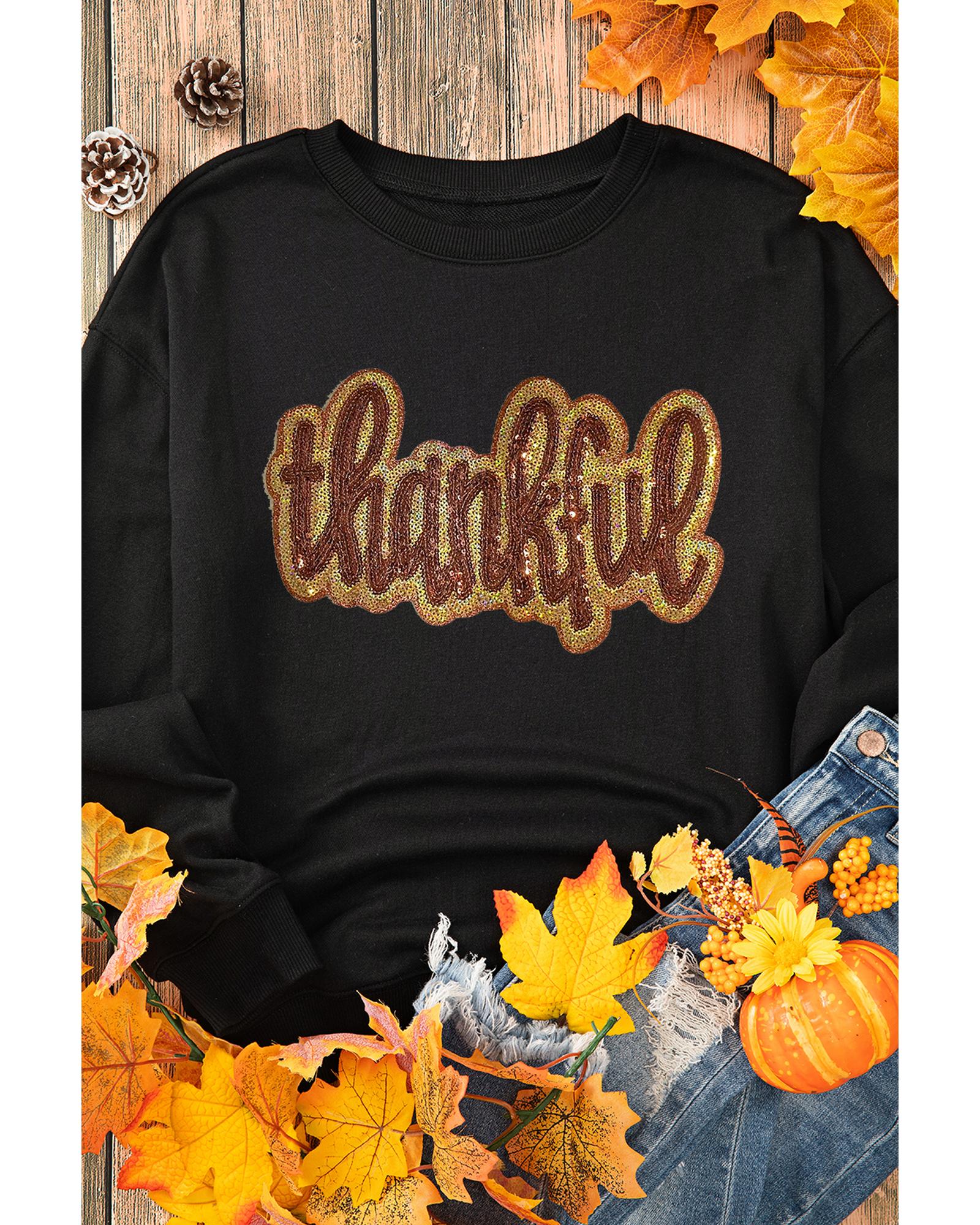 Black Glittering thankful Graphic Drop Shoulder Sweatshirt – L
