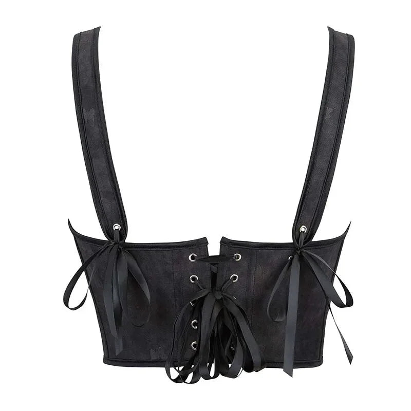 • 1 x Black Gothic Slimming Vest Corset With Butterfly Detail Backless Boned And Lace-Up For Steampunk Style