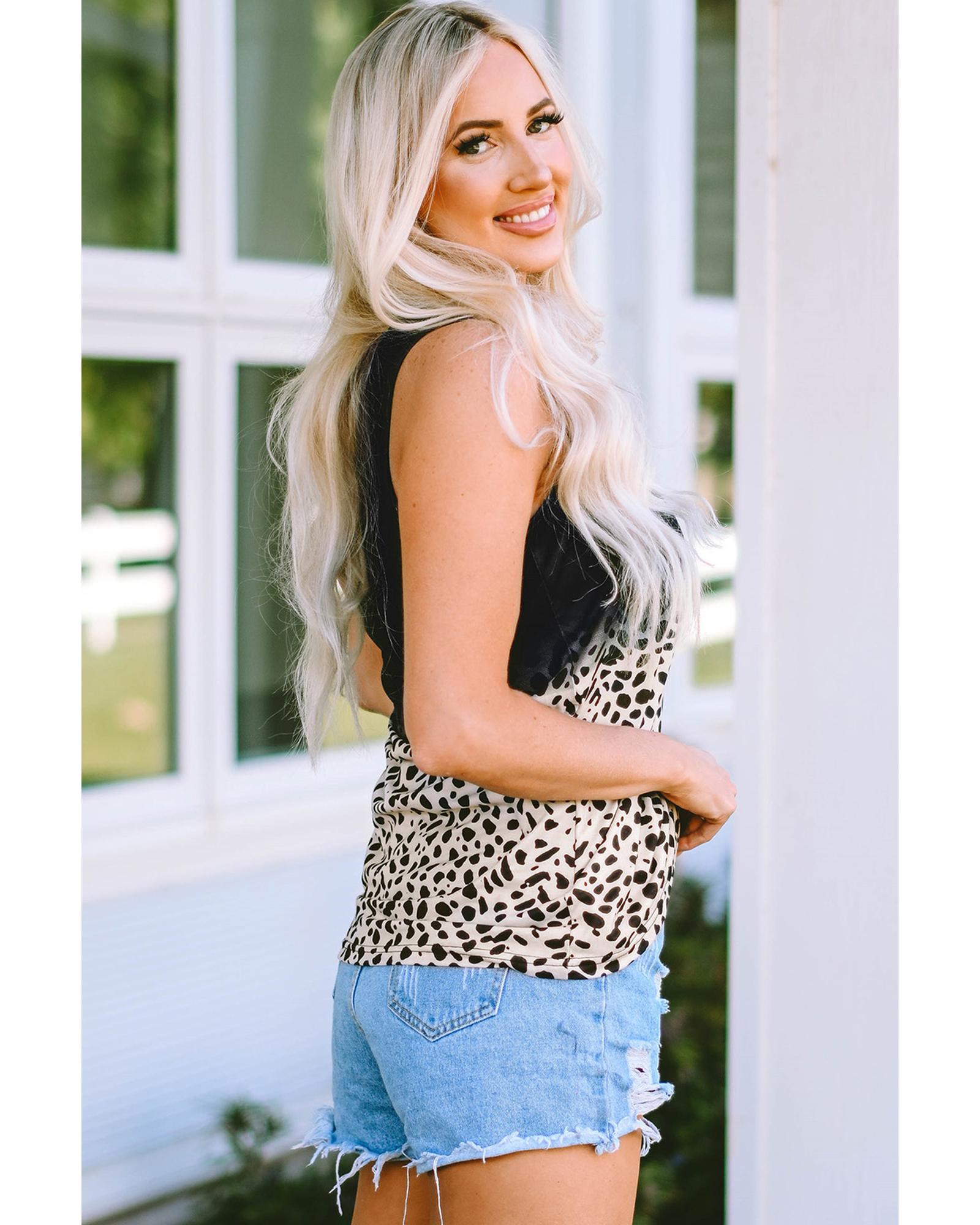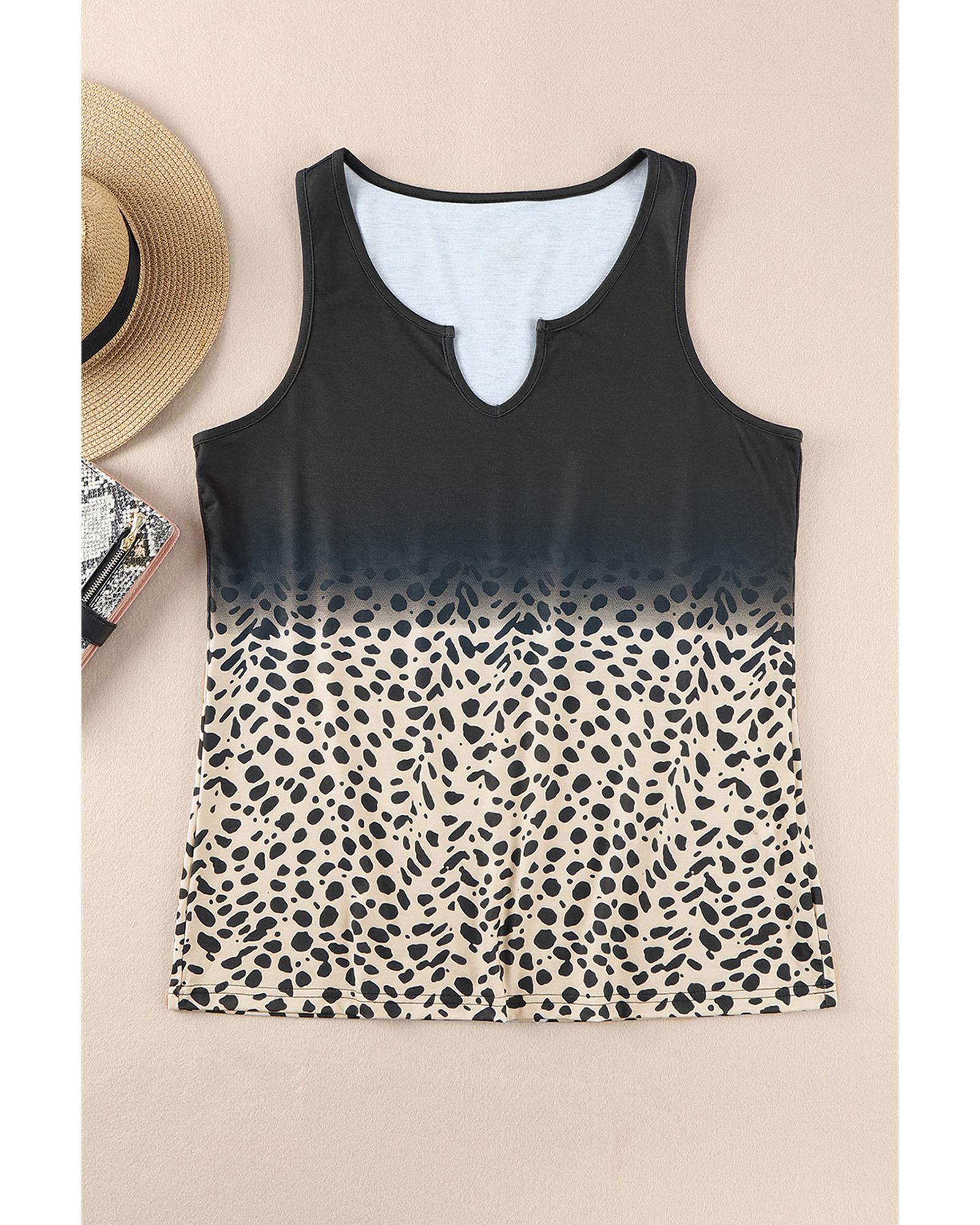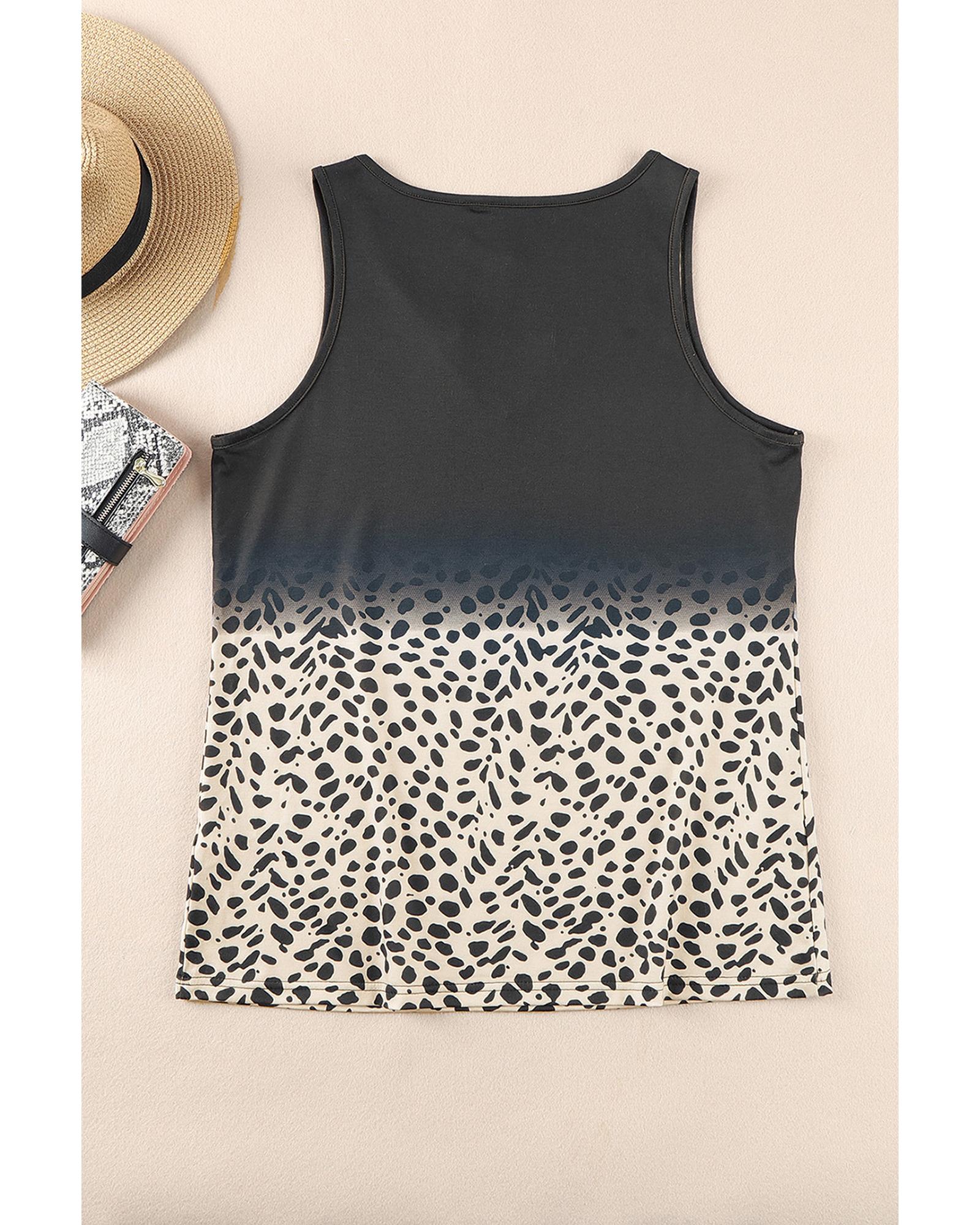- Stylish and trendy Gradient Leopard Split Neck Tank Top