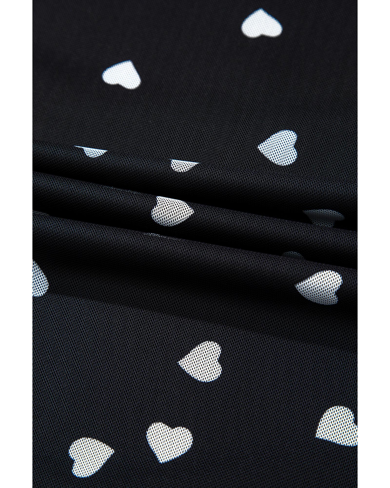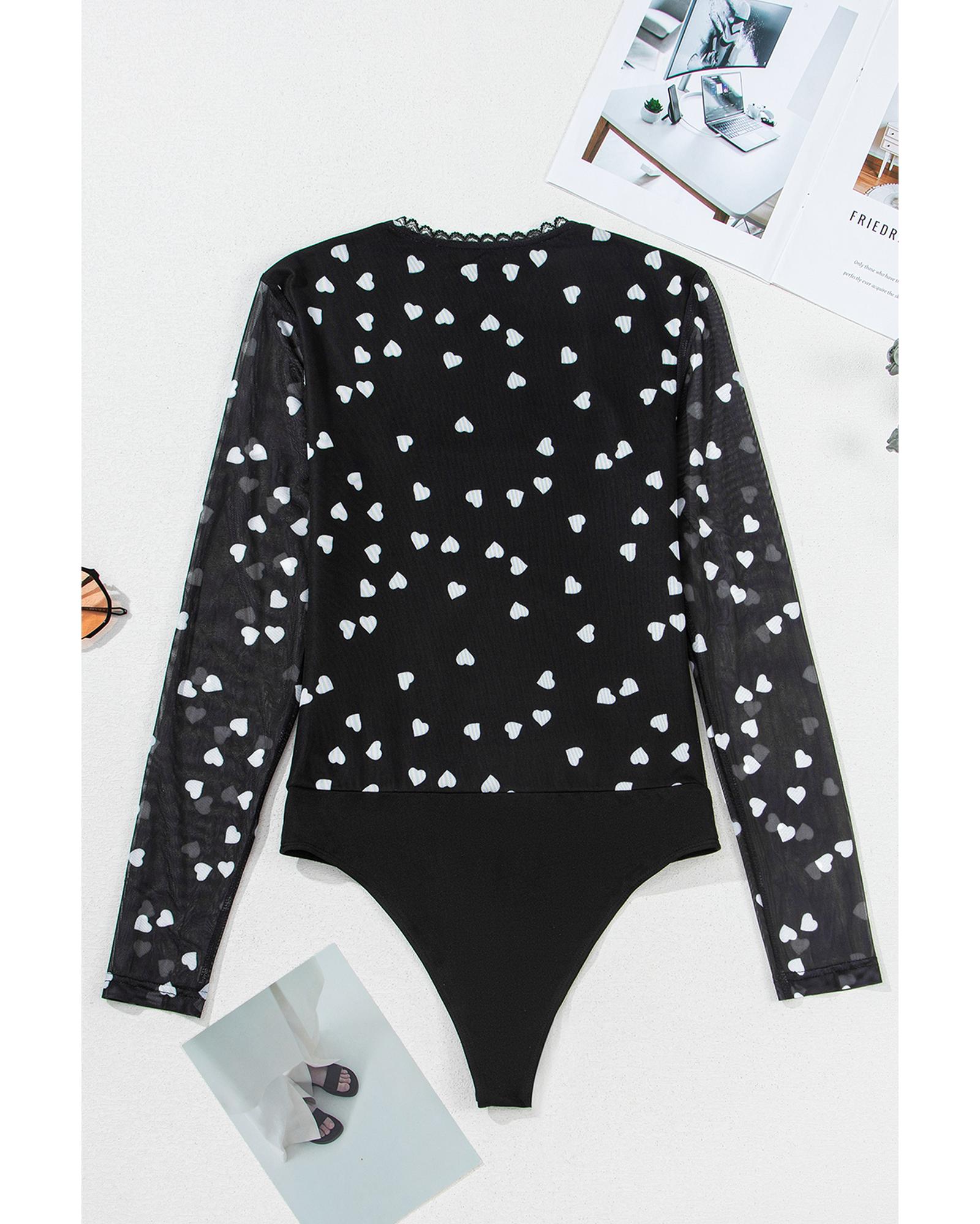 Black Heart Shape Mesh Patchwork Square Neck Bodysuit – L