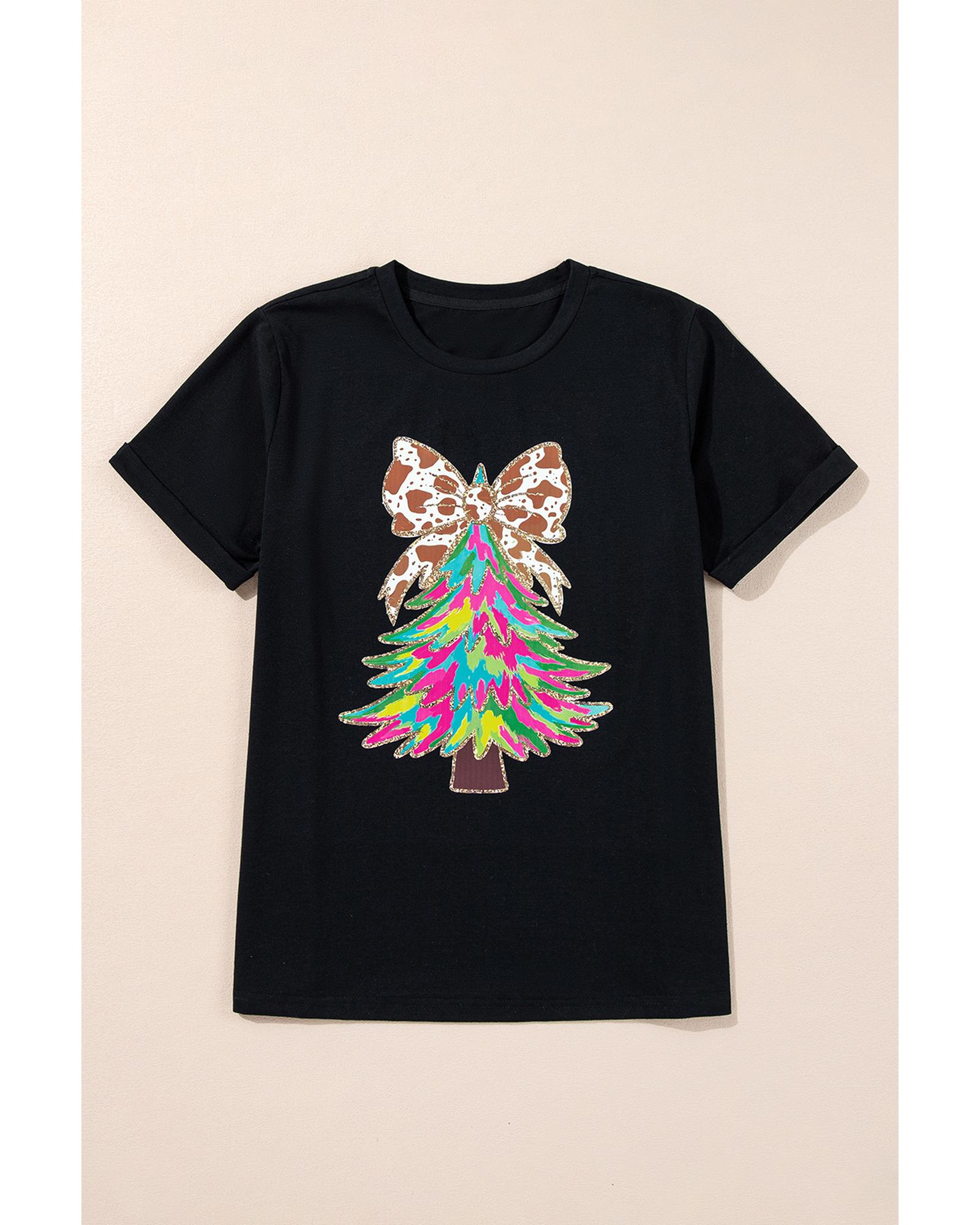 - Black Heat Transfer Printing Christmas Tree Bowknot T