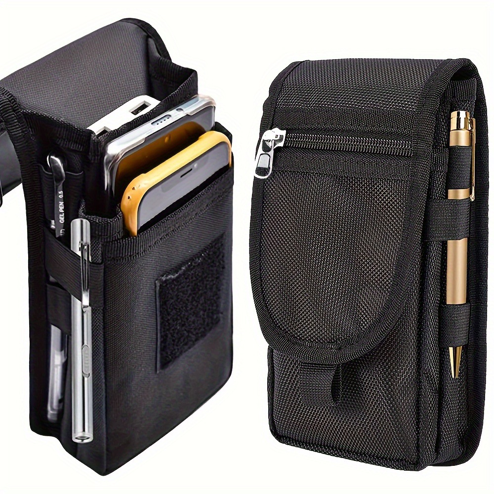 Black Heavy-Duty Tactical Phone Pouch – Multi-Pocket Belt Holster & Utility Waist Bag for Outdoor Work and EDC