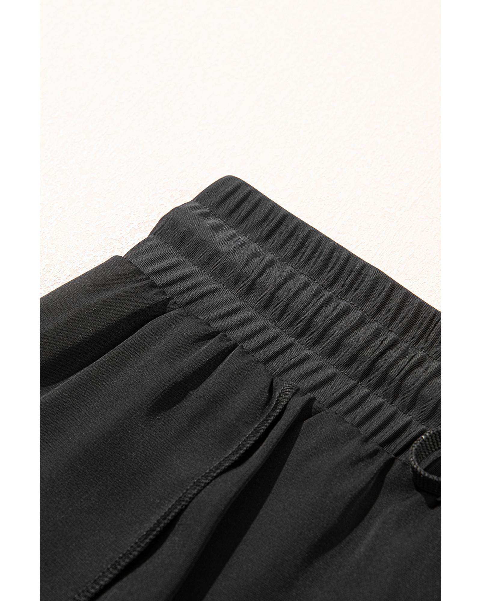 Black High Waisted Drawstring 2-in-1 Side Pocket Color Block Bikini Shorts – XL