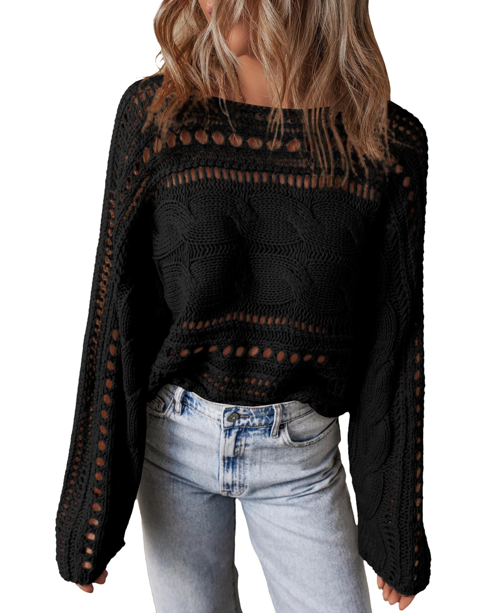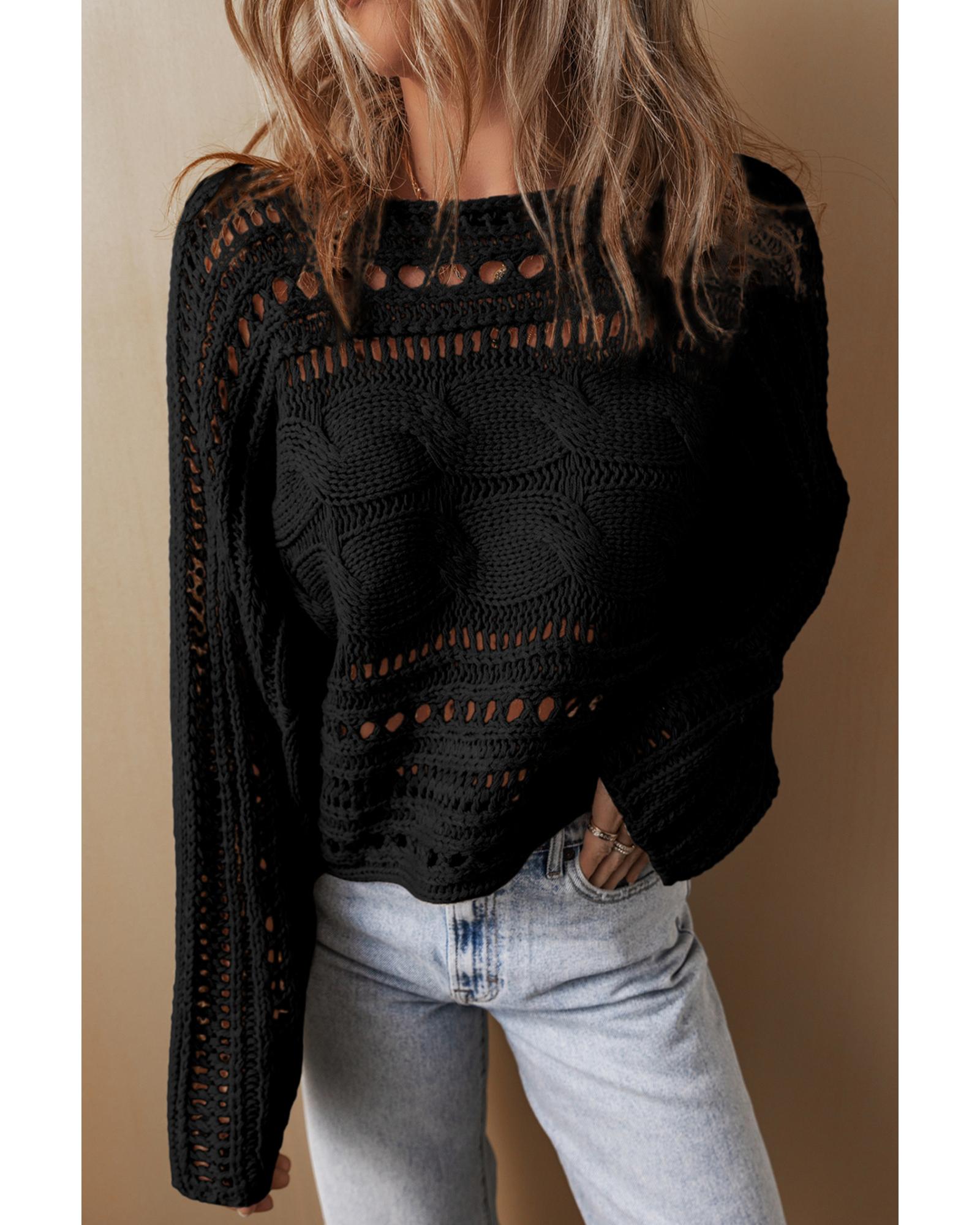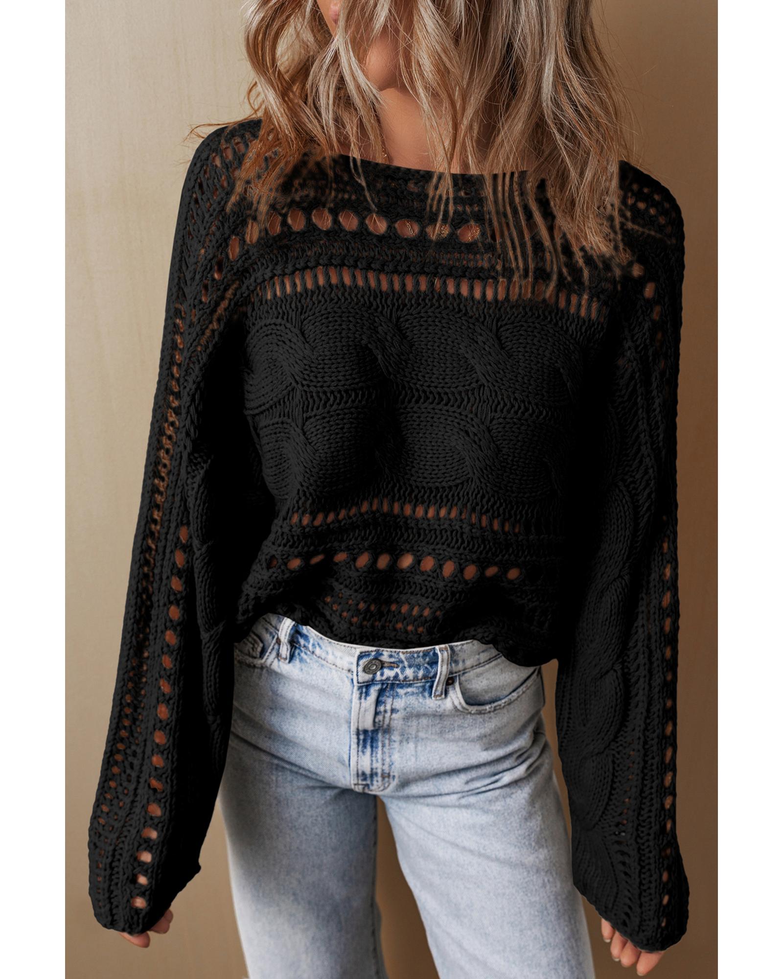 Black Hollow-out Cable Knit Cropped Sweater – XL