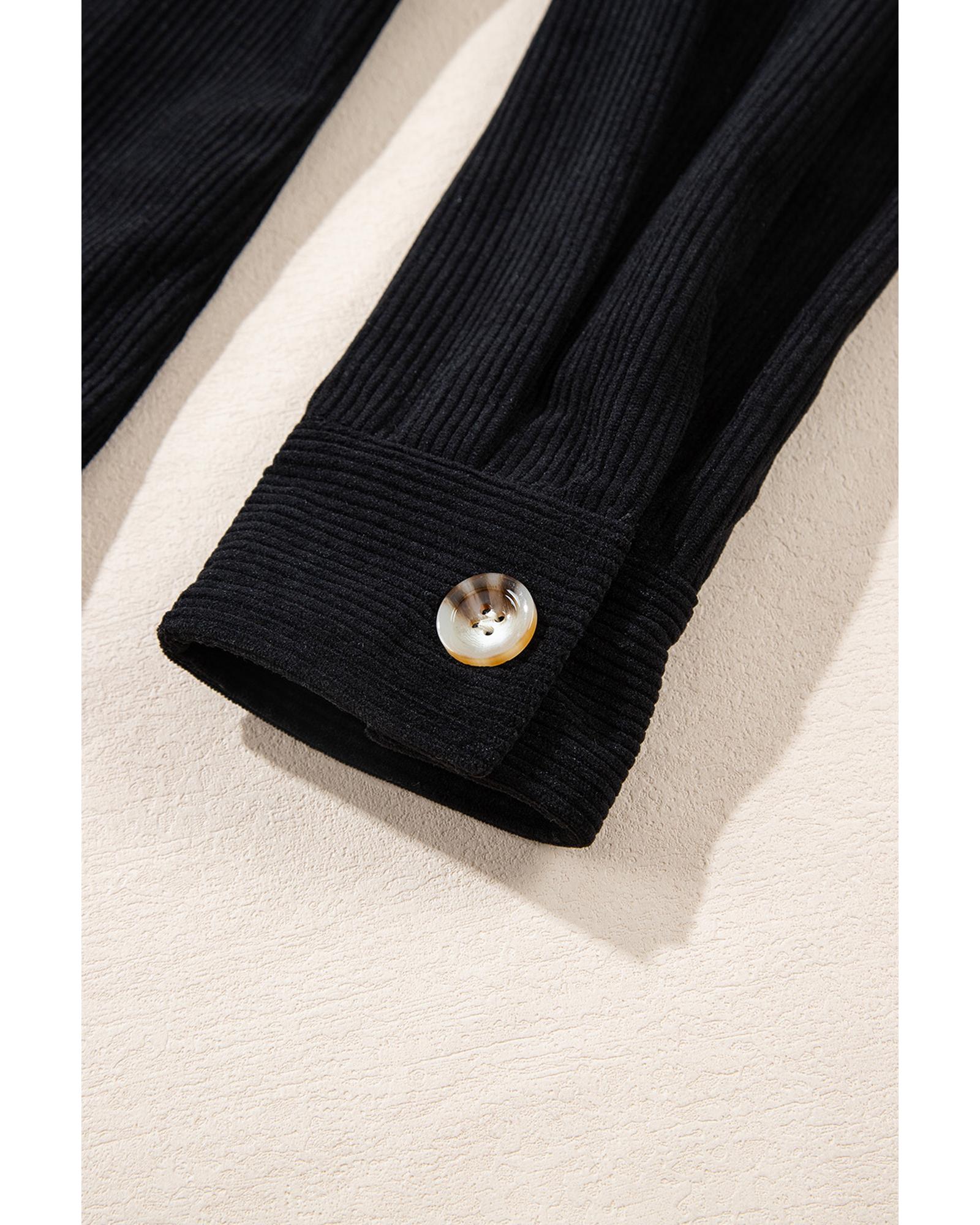 Black Hooded Drawstring Pockets Corduroy Shacket – XL