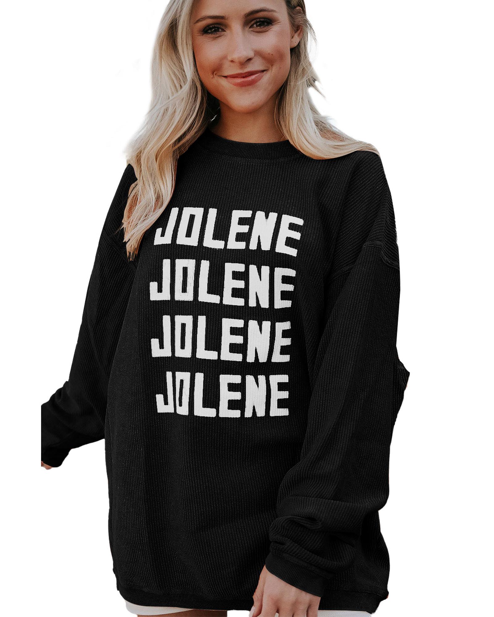 Black JOLENE Ribbed Corded Oversized Sweatshirt – 2XL