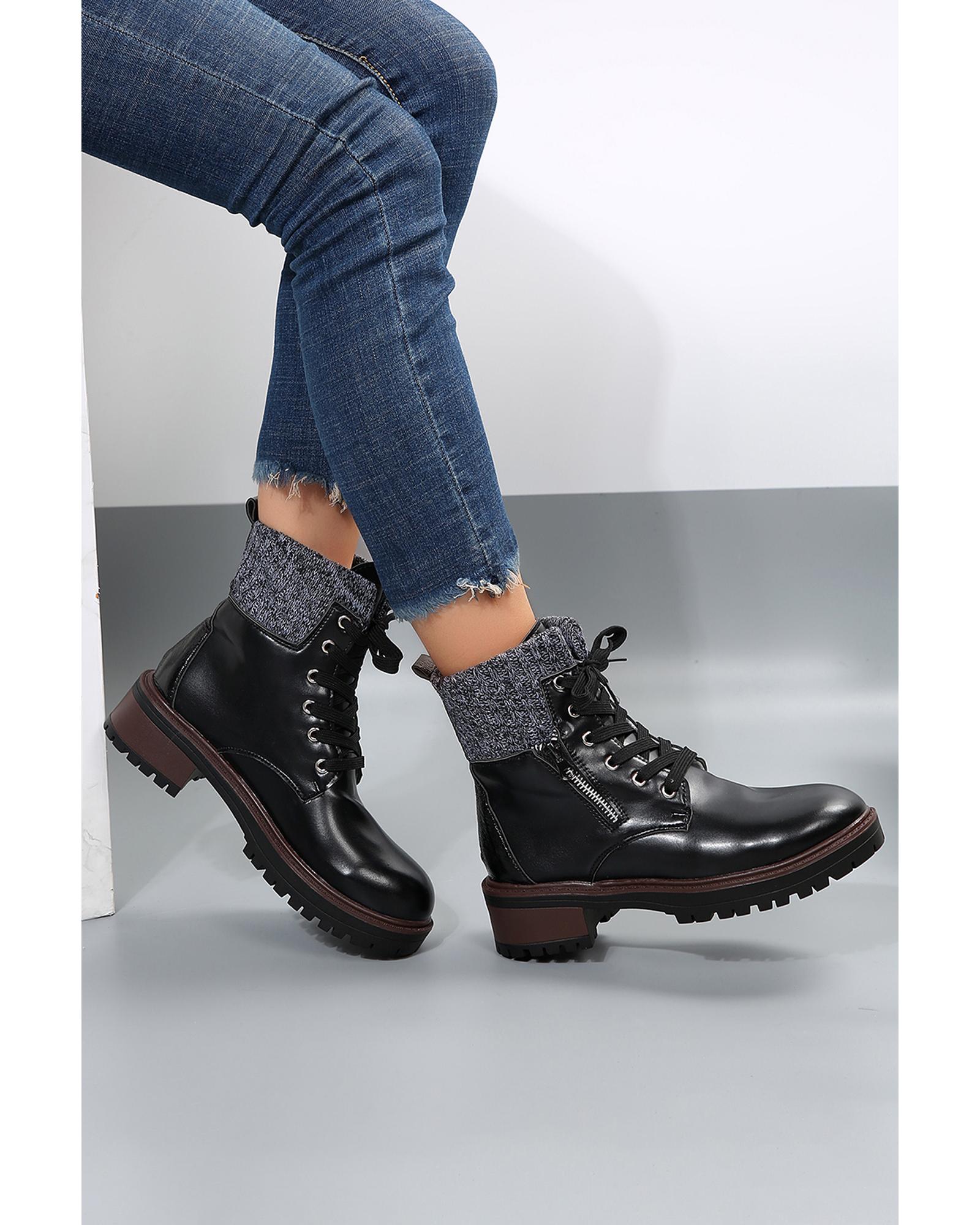 Black Knitted Patched Lace-up Heeled Ankle Boots – 39 EU