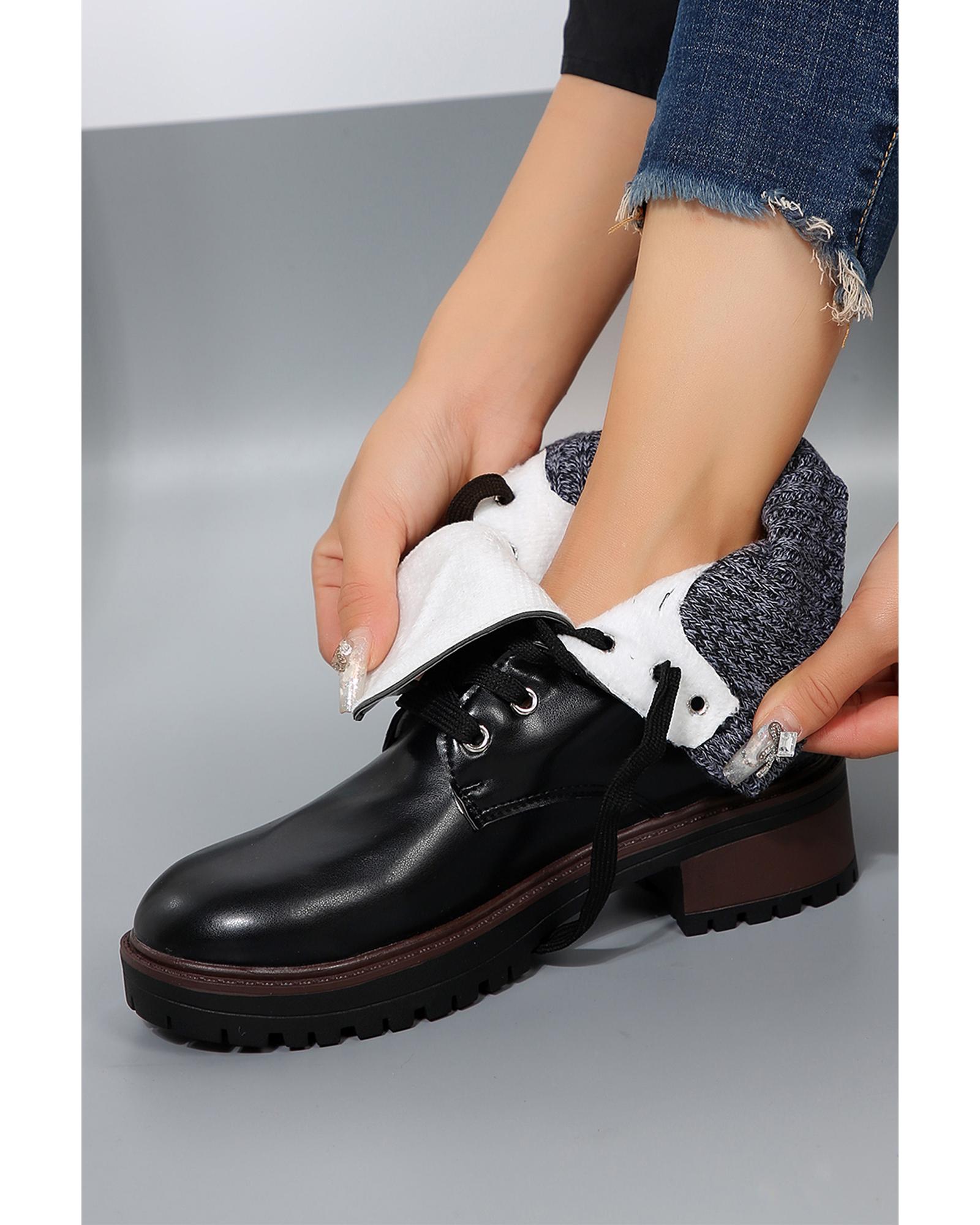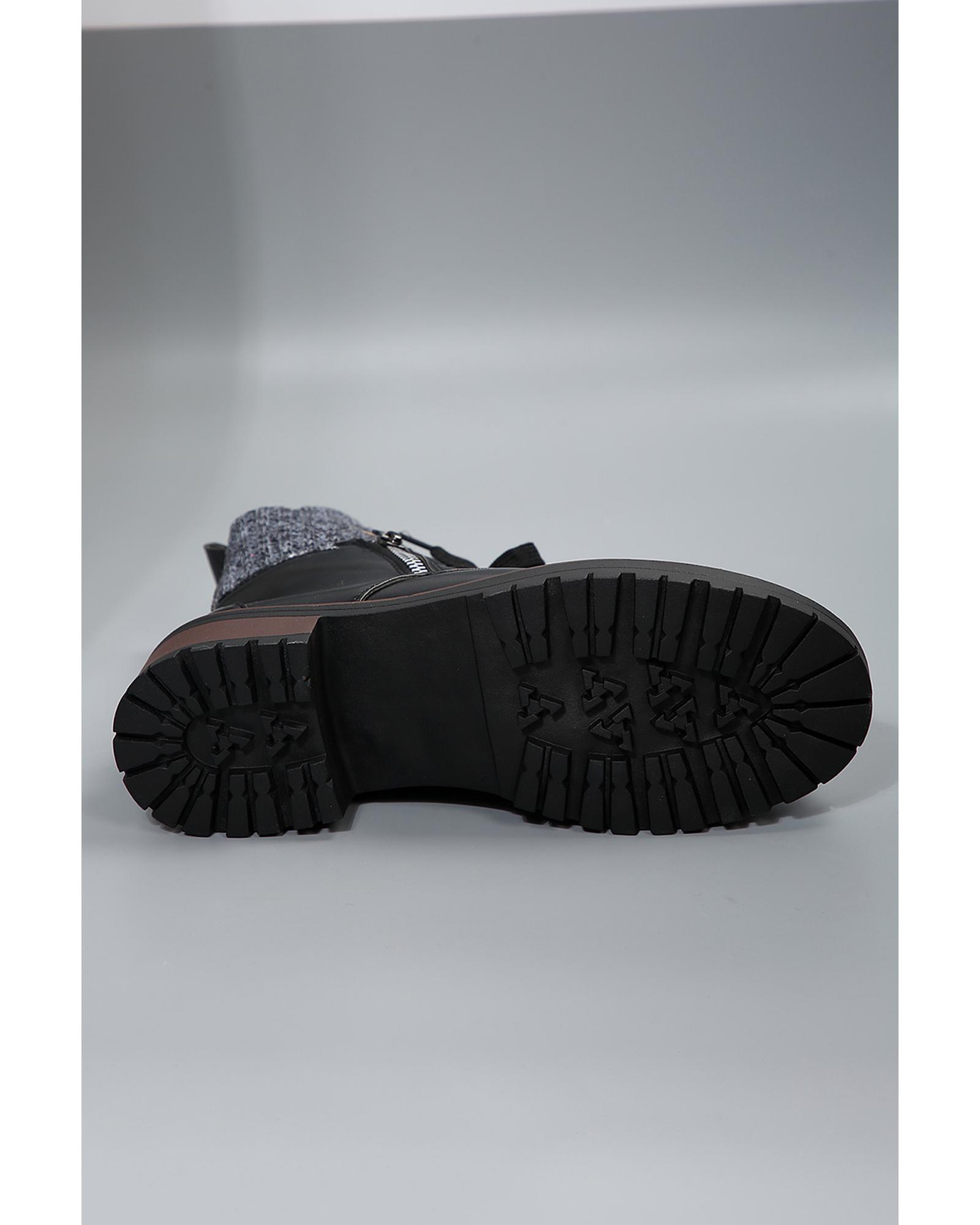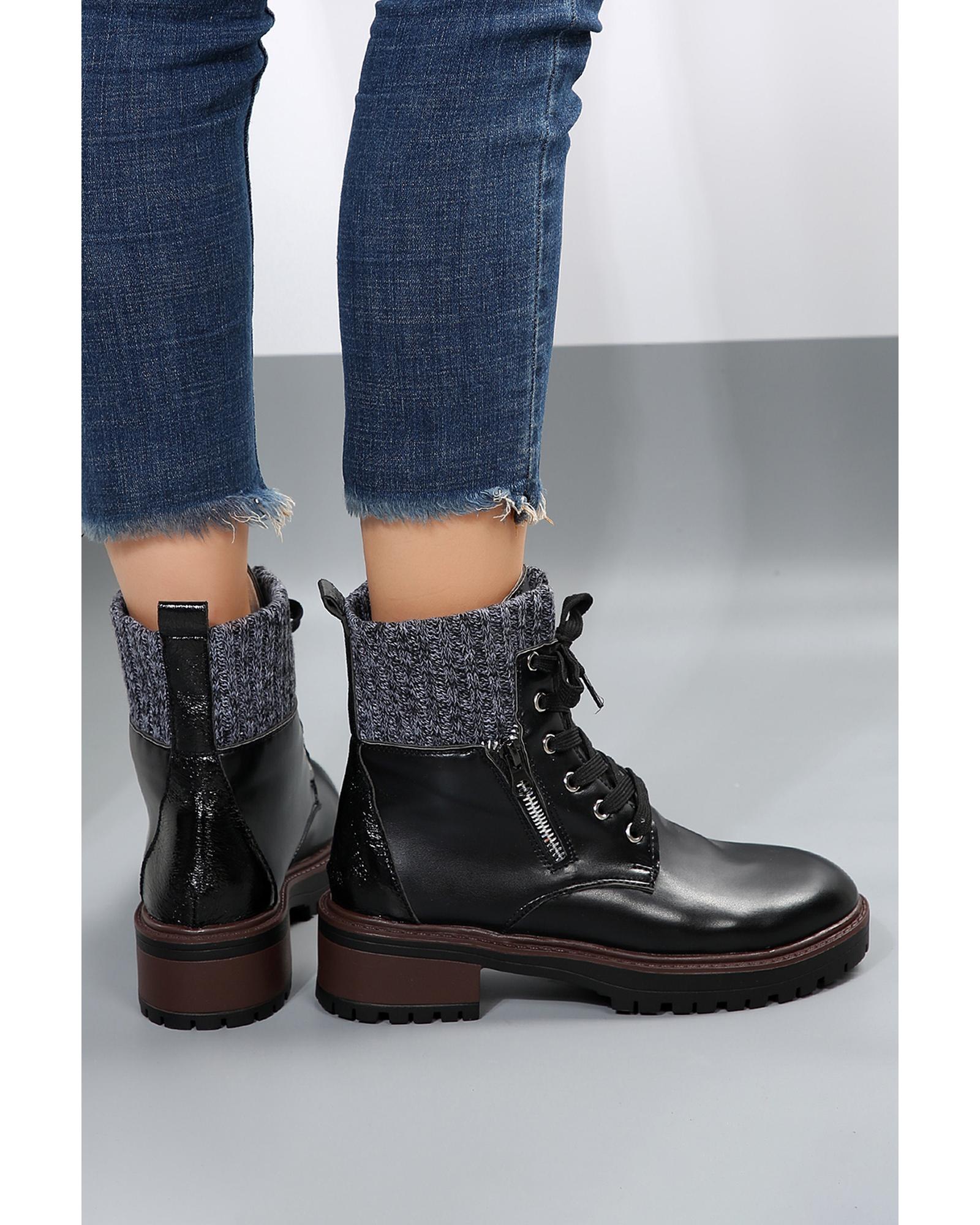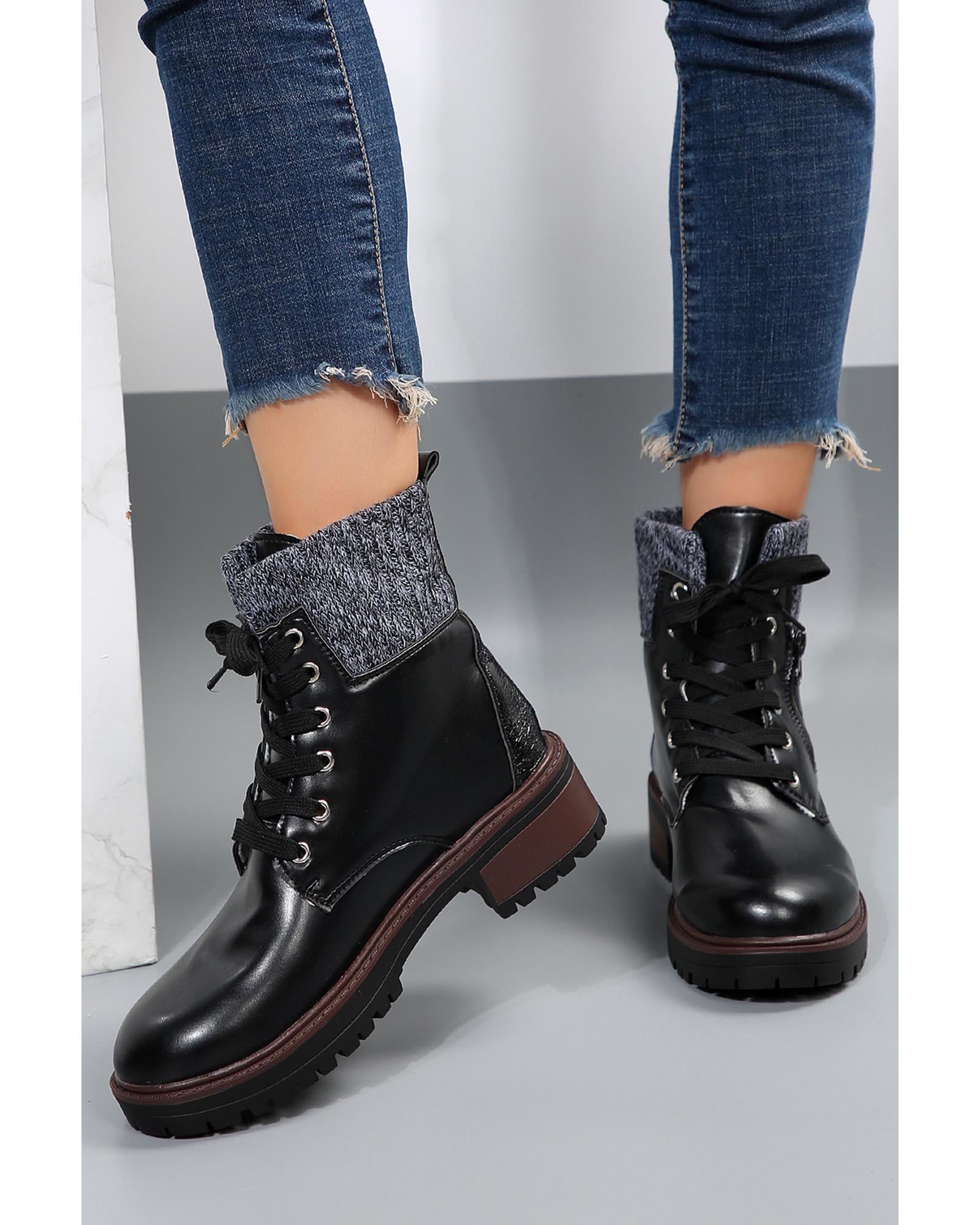 Black Knitted Patched Lace-up Heeled Ankle Boots – 40 EU