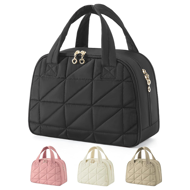 Large Capacity Travel Toiletry Bag with Wide Opening – Puffy Nylon Makeup Organizer