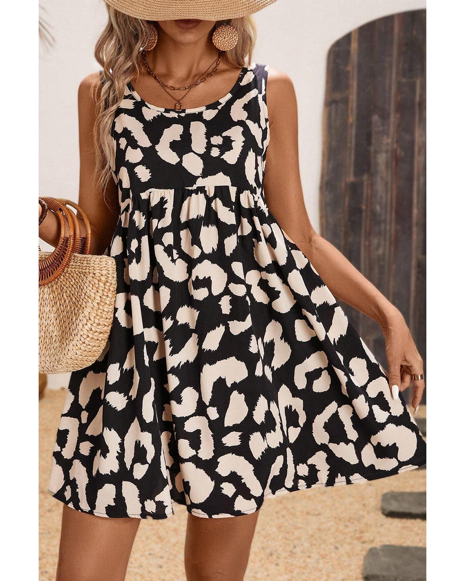 Black Leopard Print U Neck Sleeveless High Waist Dress – S