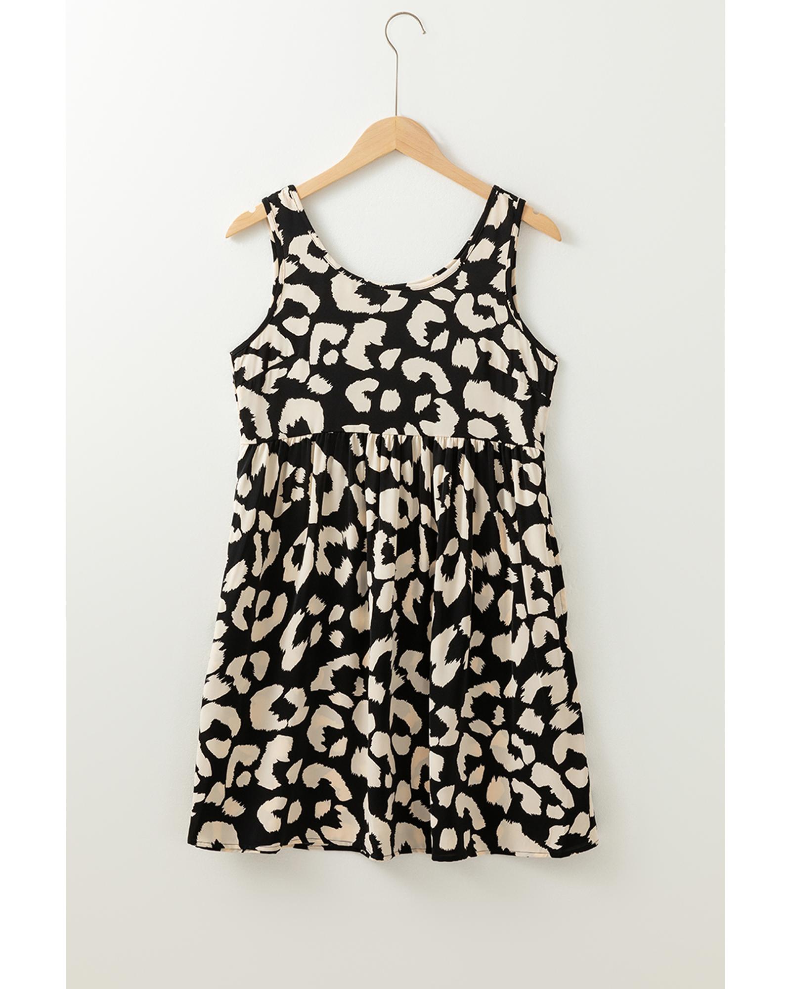 Black Leopard Print U Neck Sleeveless High Waist Dress – XL