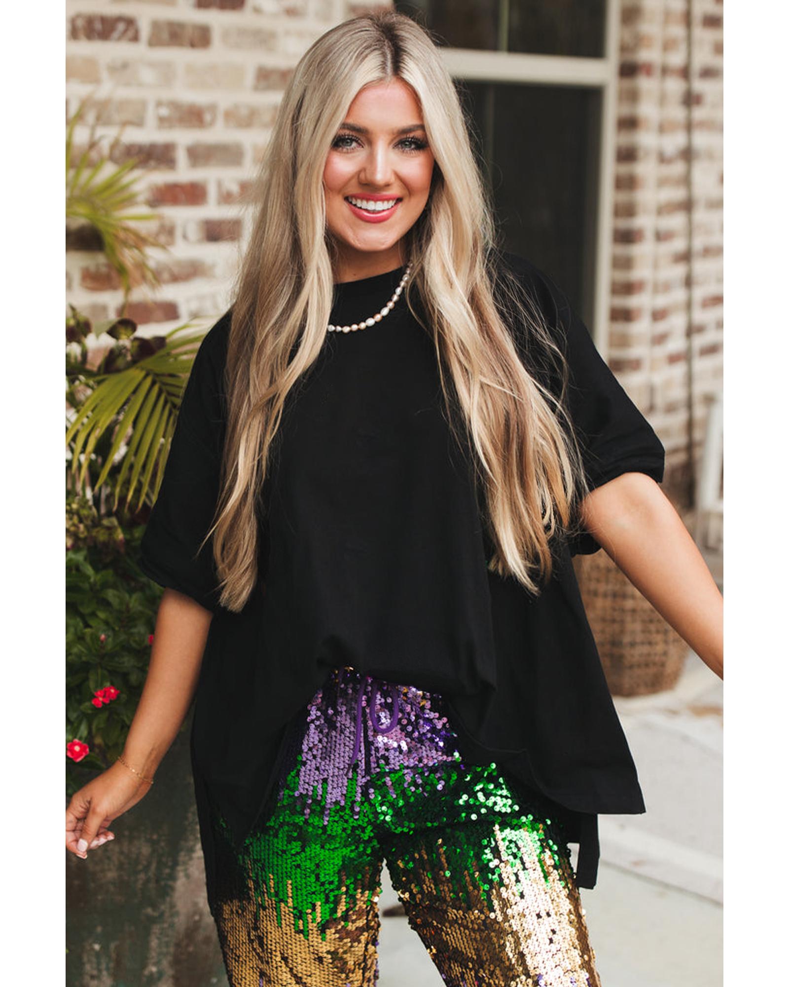 Black Loose Half Sleeve Hi Low Hem T Shirt – XL