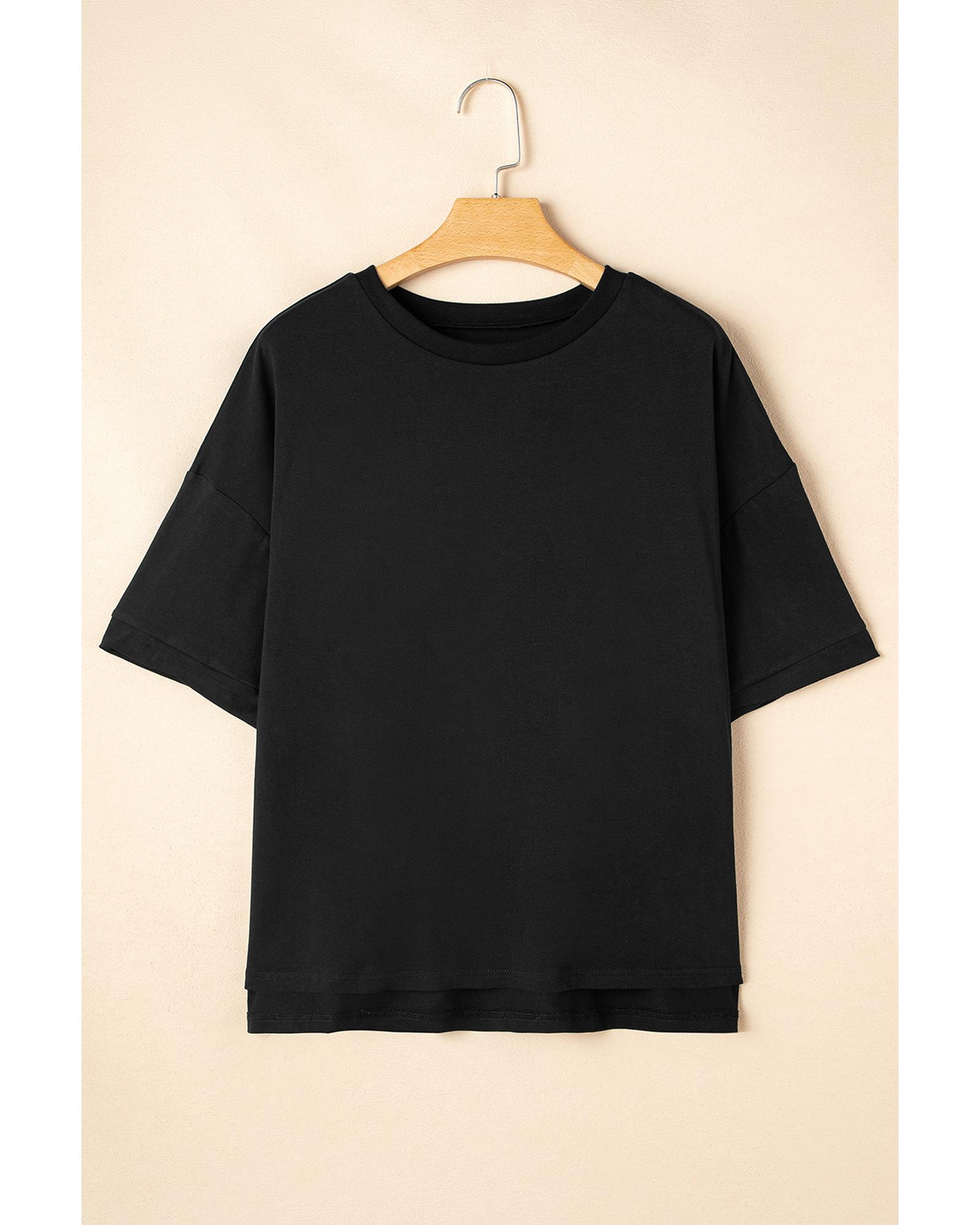 - Black Loose Half Sleeve Hi Low Hem T Shirt