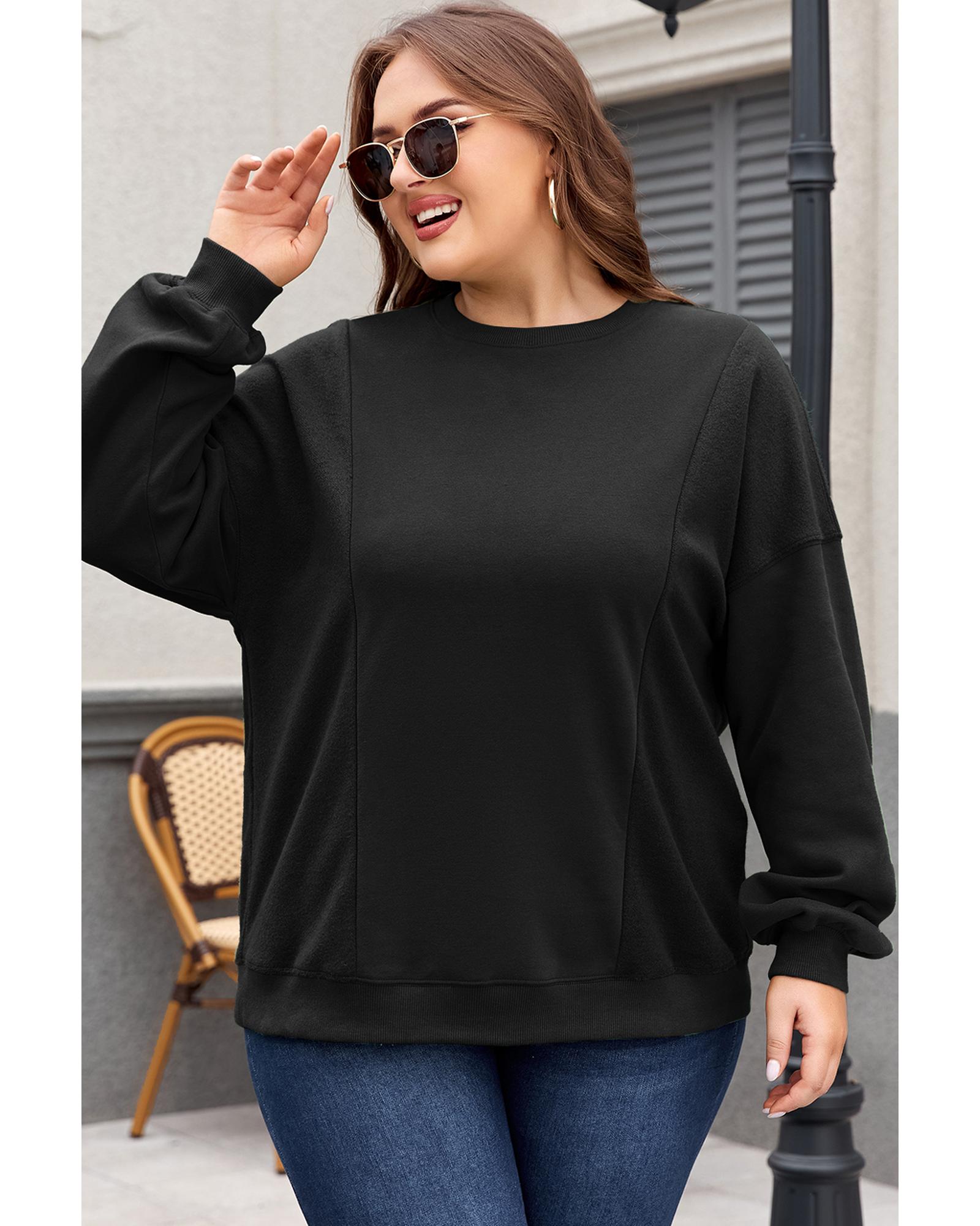 Black Loose Patchwork Crewneck Plus Size Sweatshirt – 3X