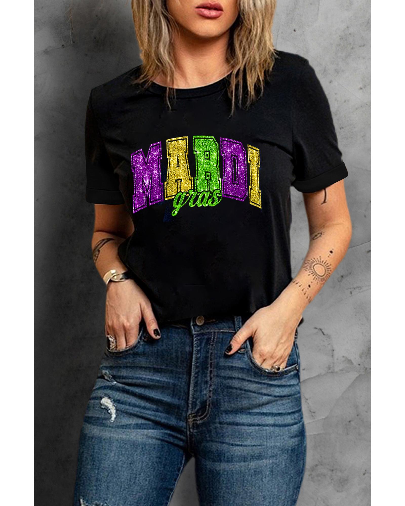- Black Mardi Gras Heat Transfer Graphic Holiday Tee
