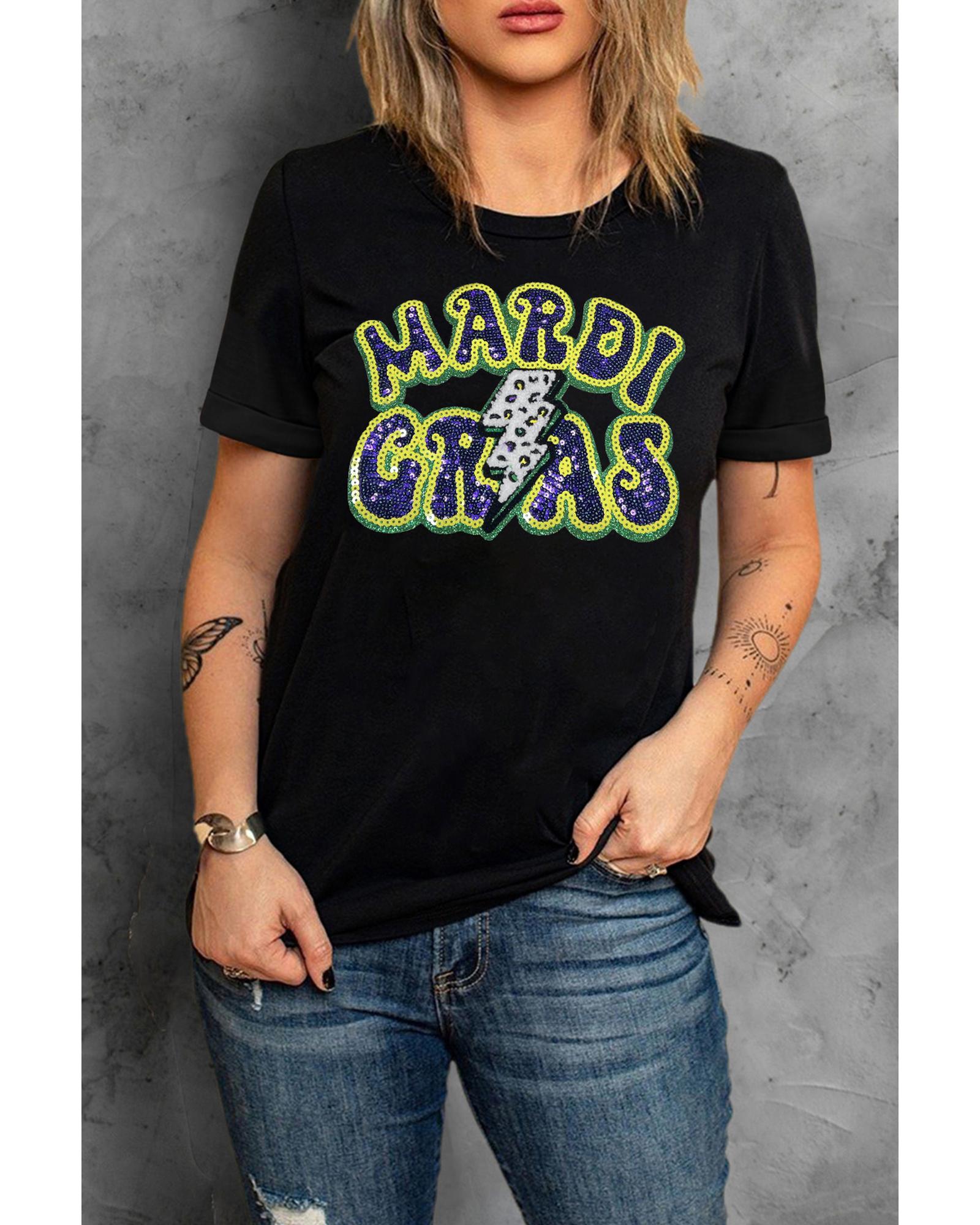 Black MARDI GRAS Lightning Graphic Short Sleeve Top – 2XL