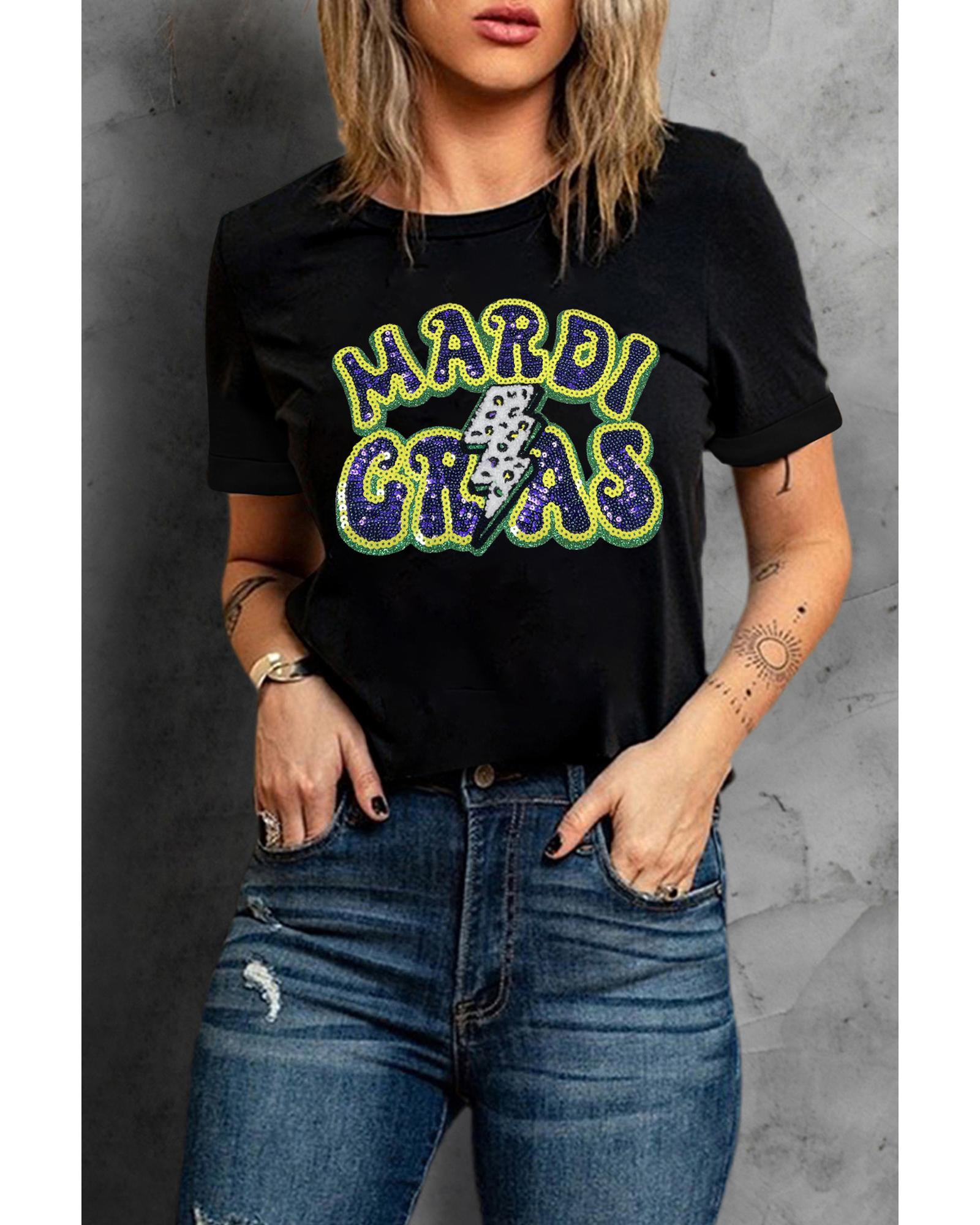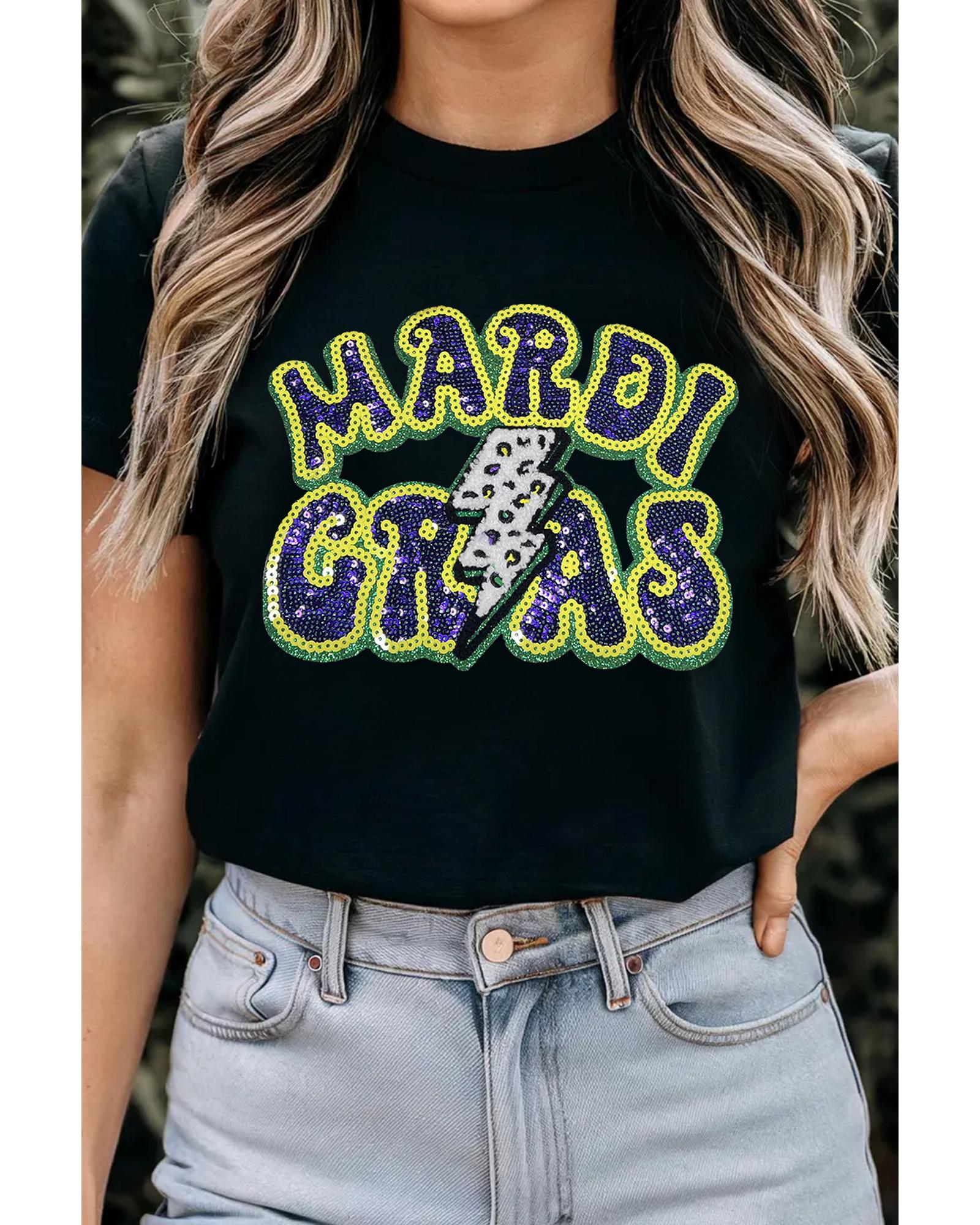 Black MARDI GRAS Lightning Graphic Short Sleeve Top – XL