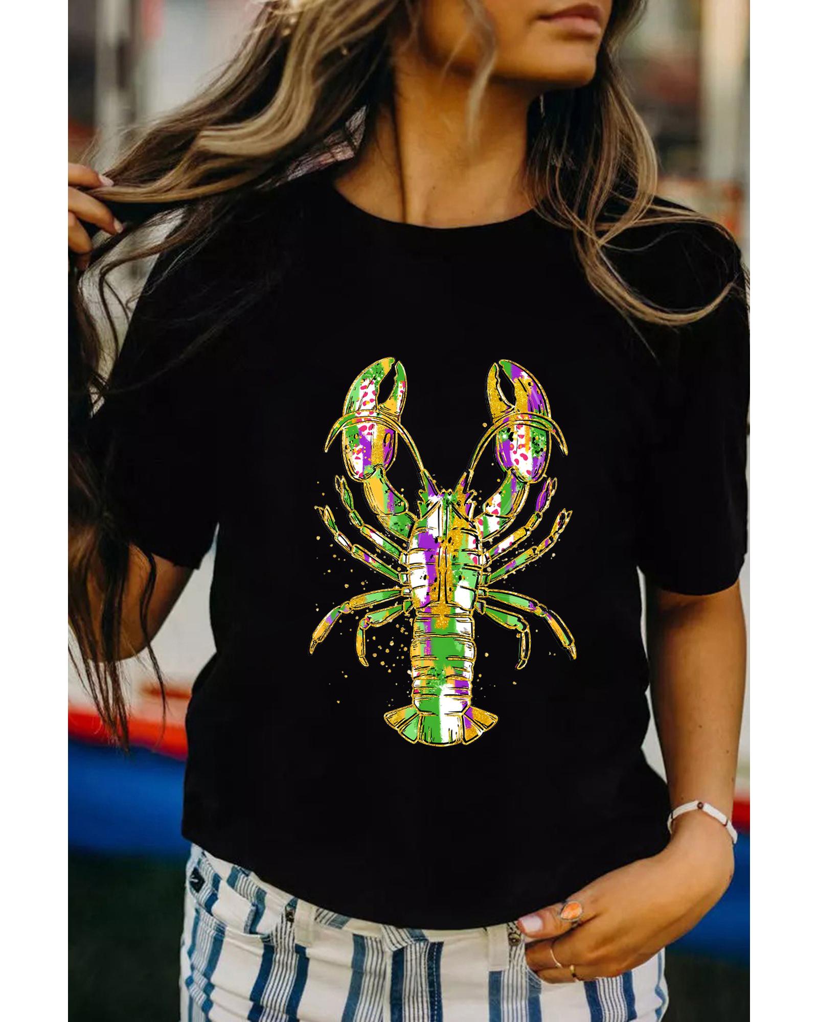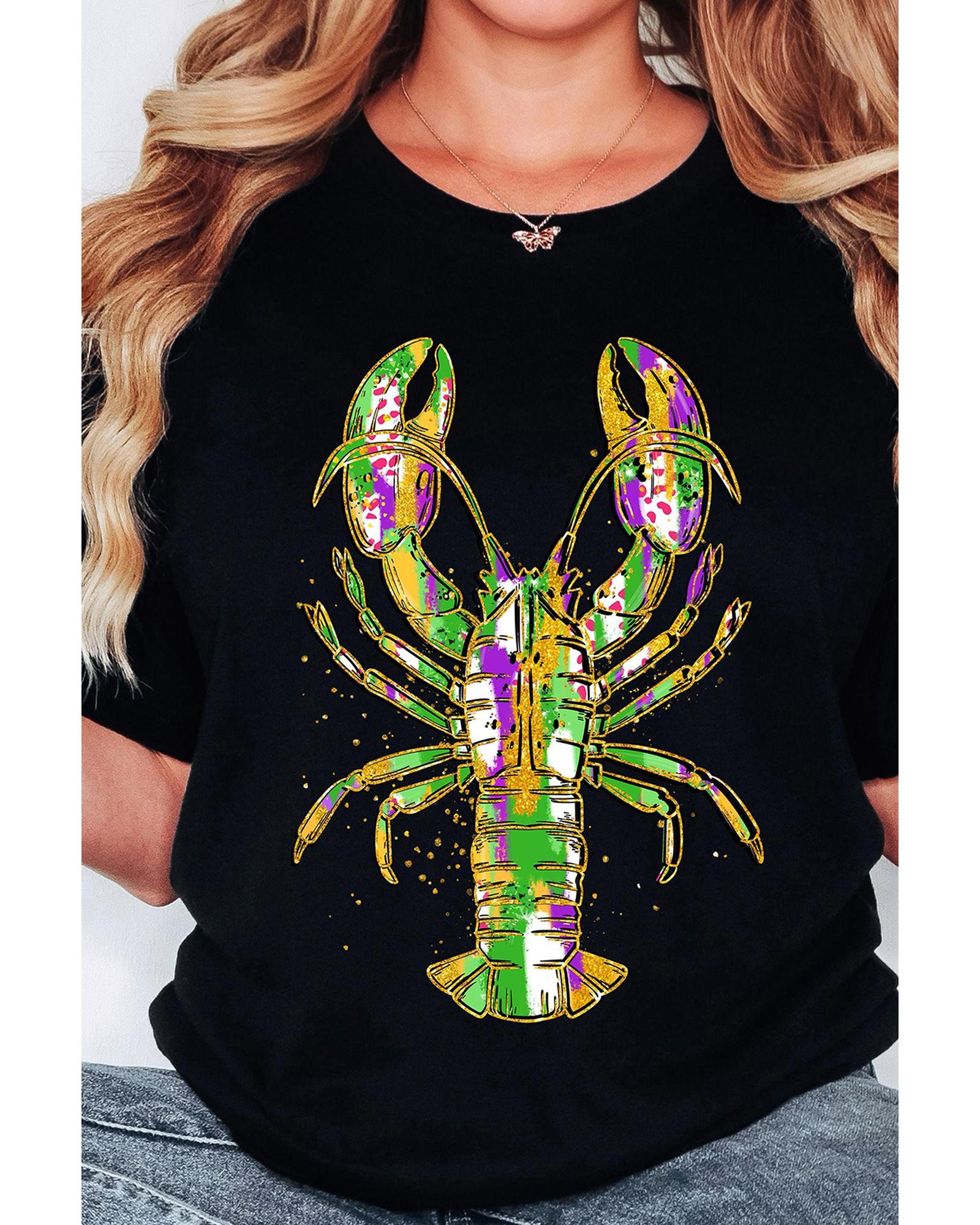 Black Mardi Gras Lobster Heat Transfer Graphic T Shirt – 2XL