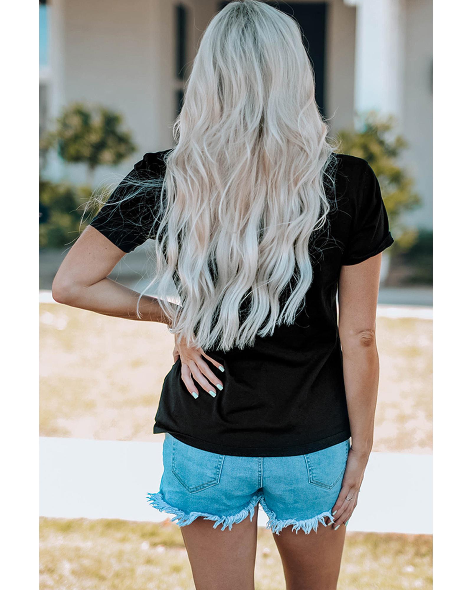 Black Stripe Scallop Lace Trim Ruffle Short Sleeves Crewneck Top - S Original price was: $57.99.Current price is: $30.99.