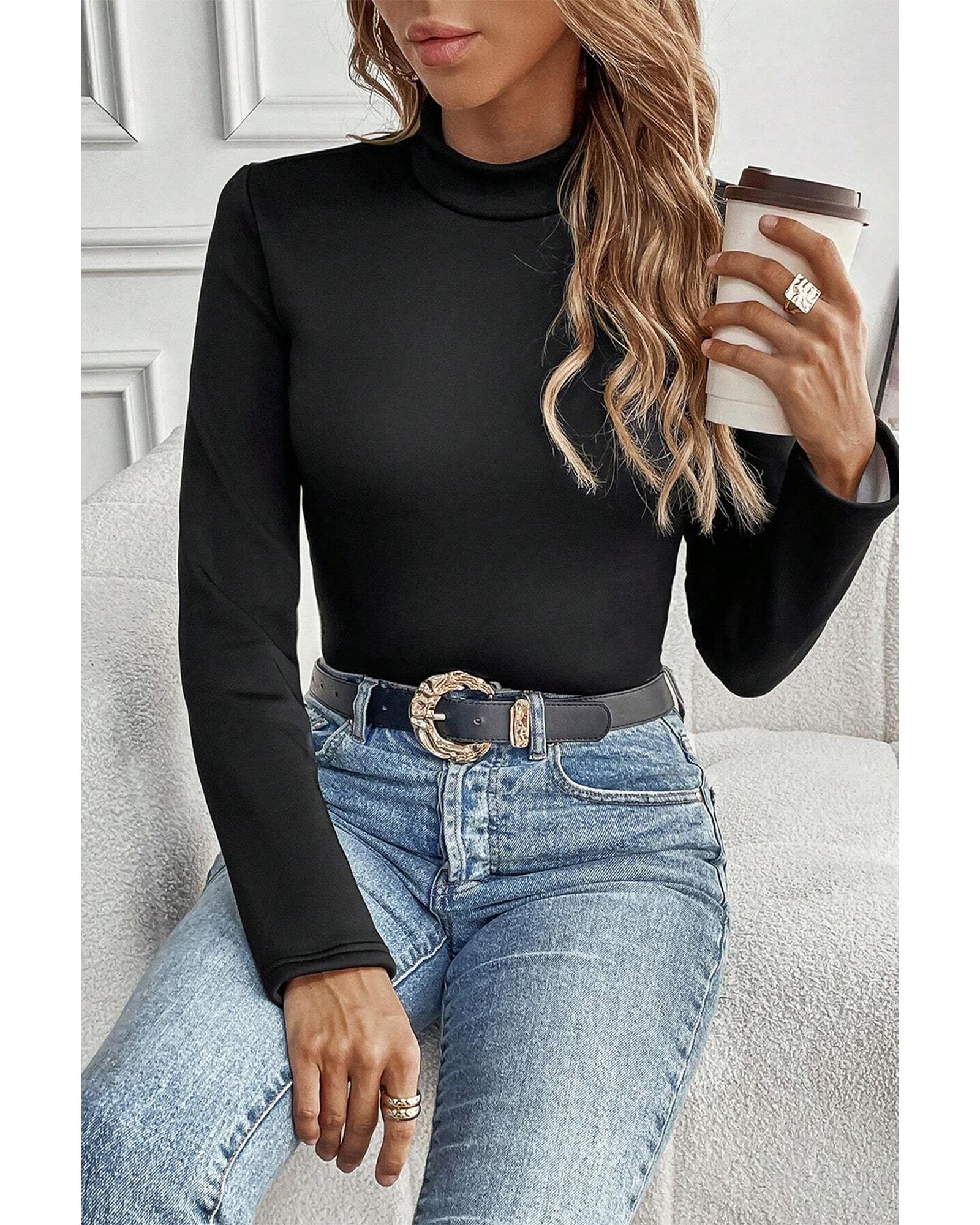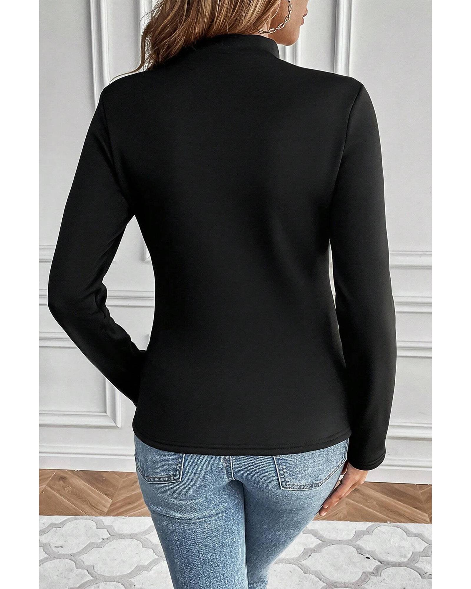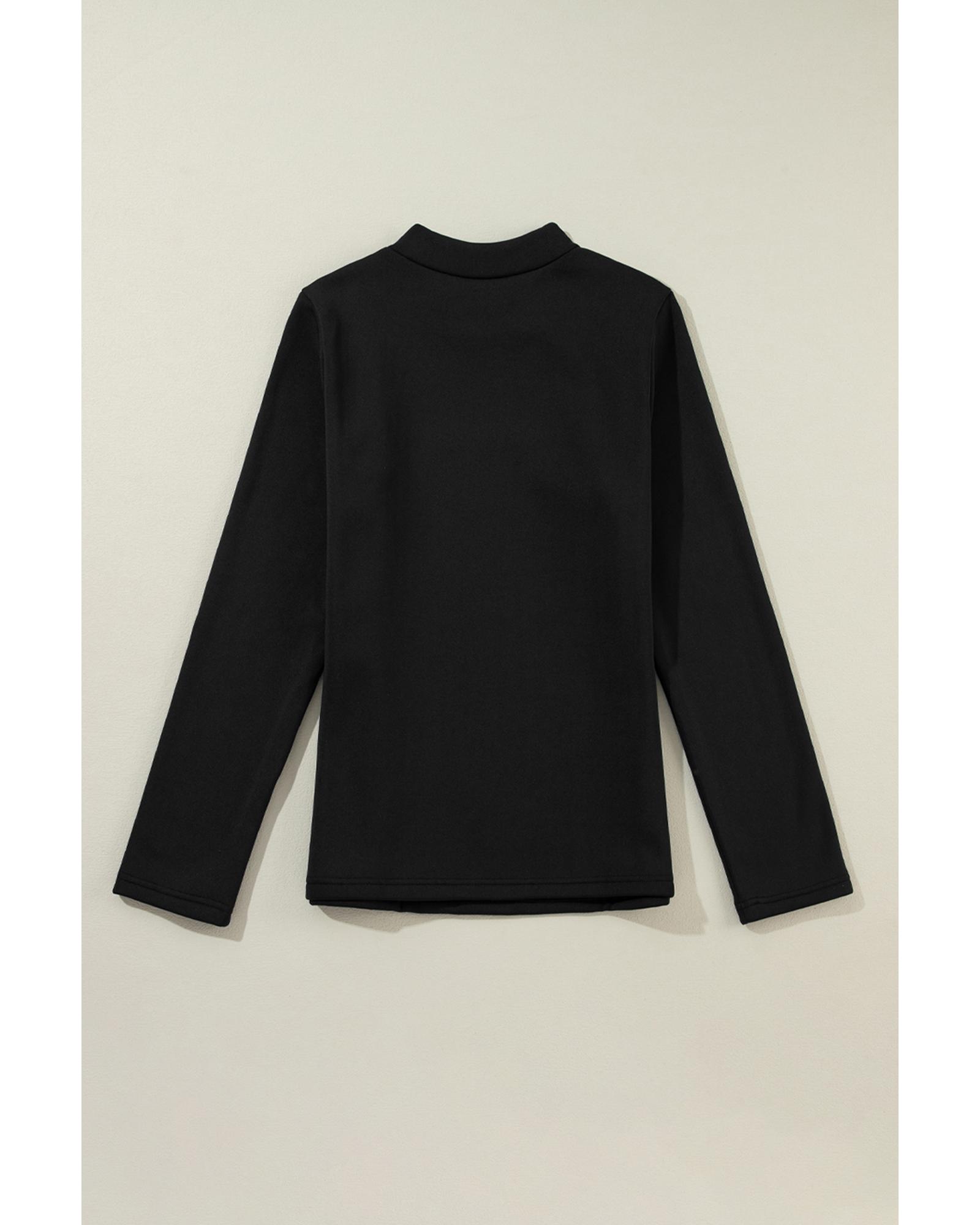 Black Mock Neck Thermal Lined Long Sleeve Tee – L