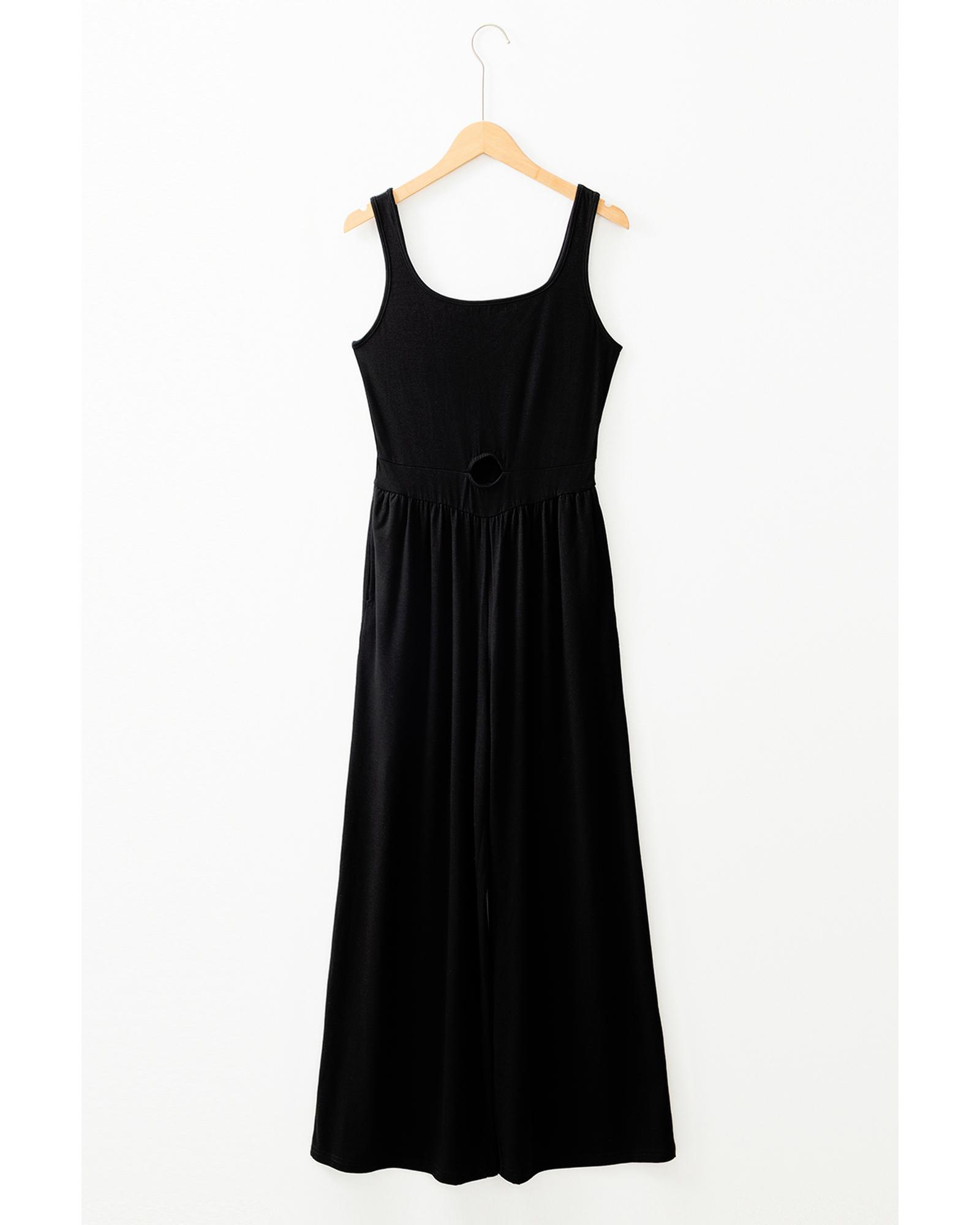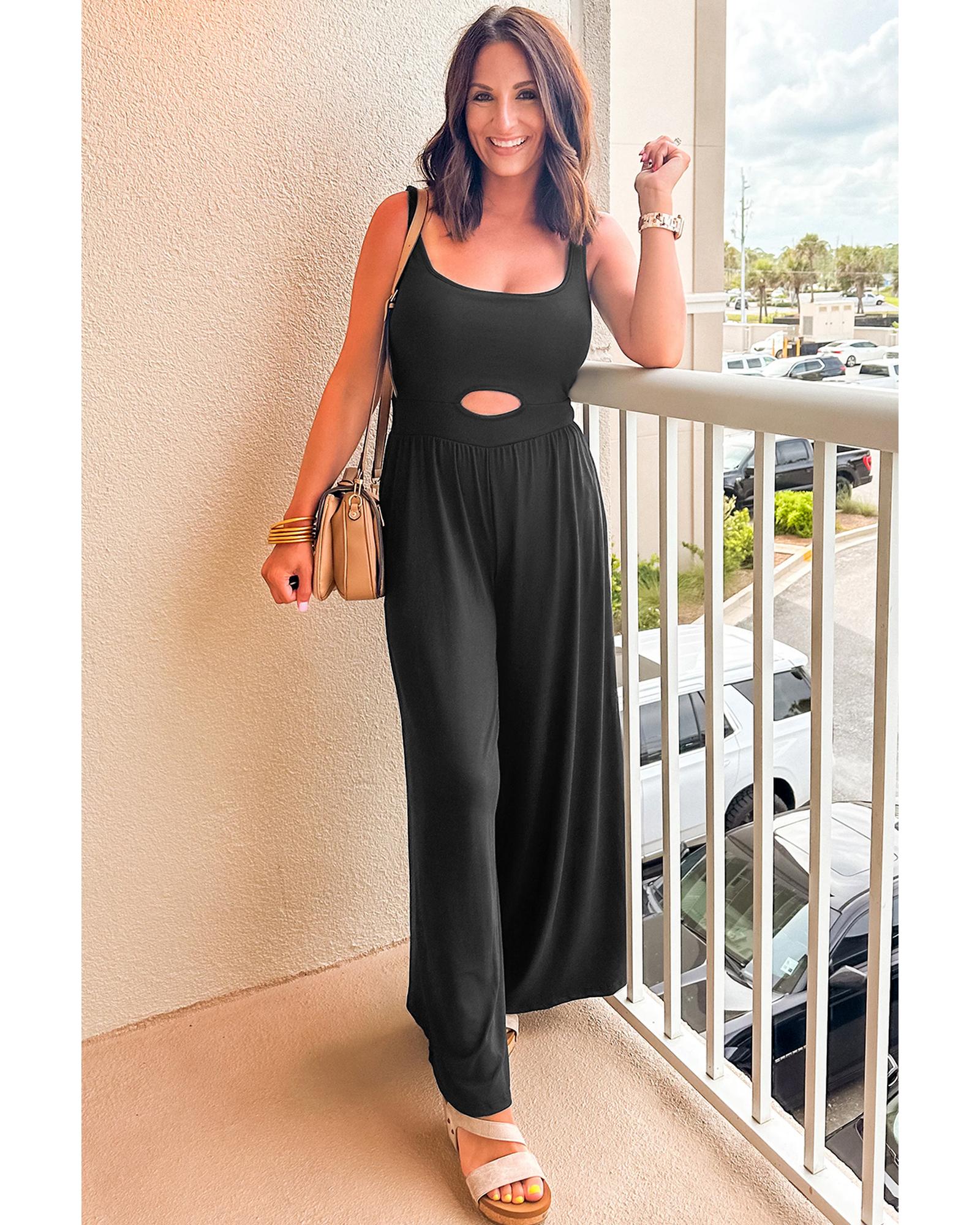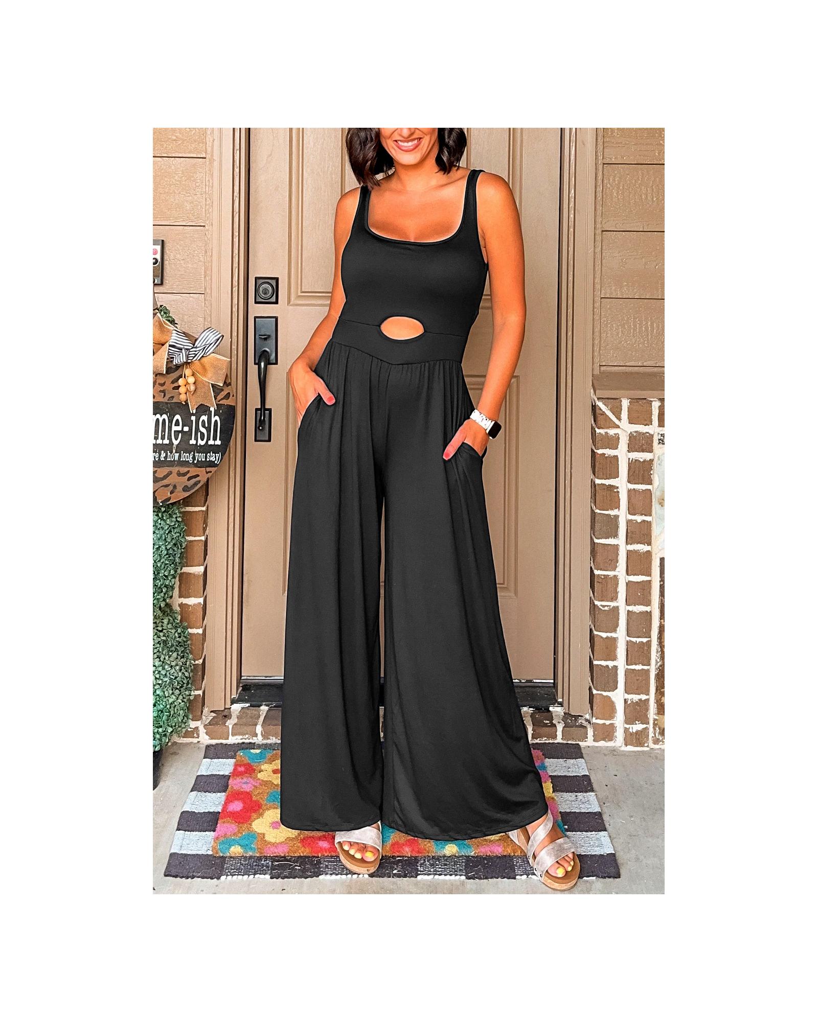 Black Peekaboo Wide Leg Square Neck Sleeveless Jumpsuit – M