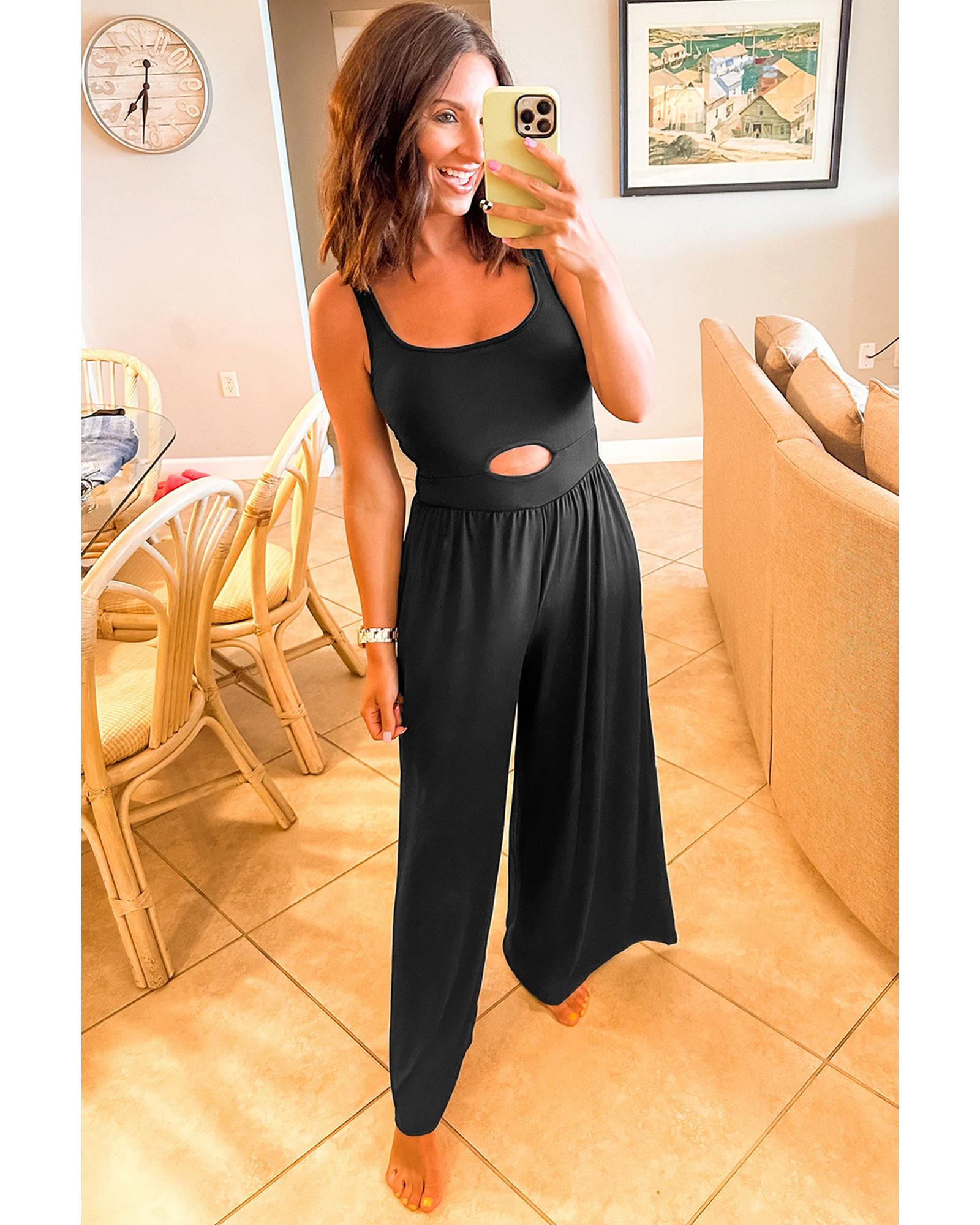 Black Peekaboo Wide Leg Square Neck Sleeveless Jumpsuit – S