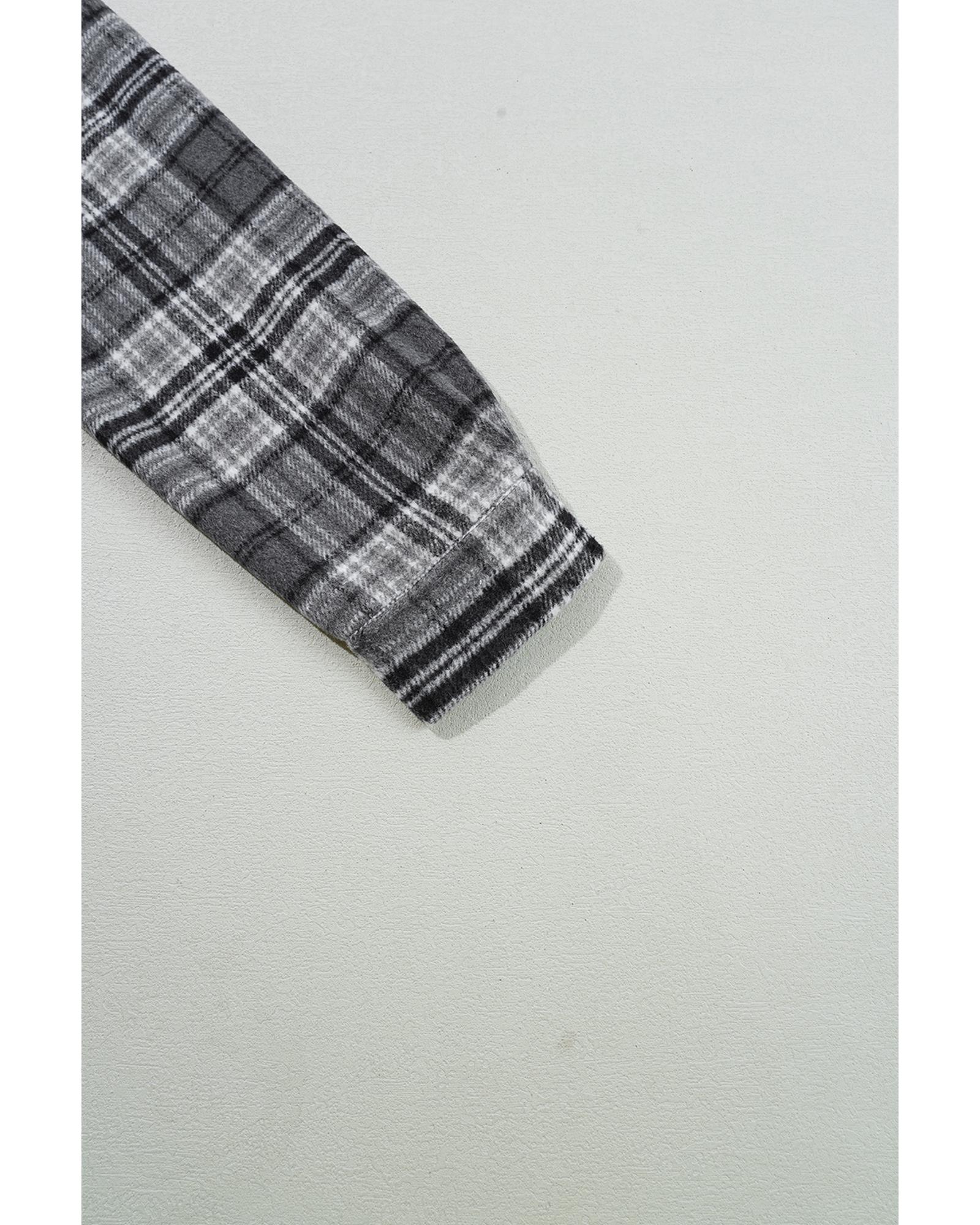 Black Plaid Print Flap Pockets Contrast Hooded Loose Shacket – L