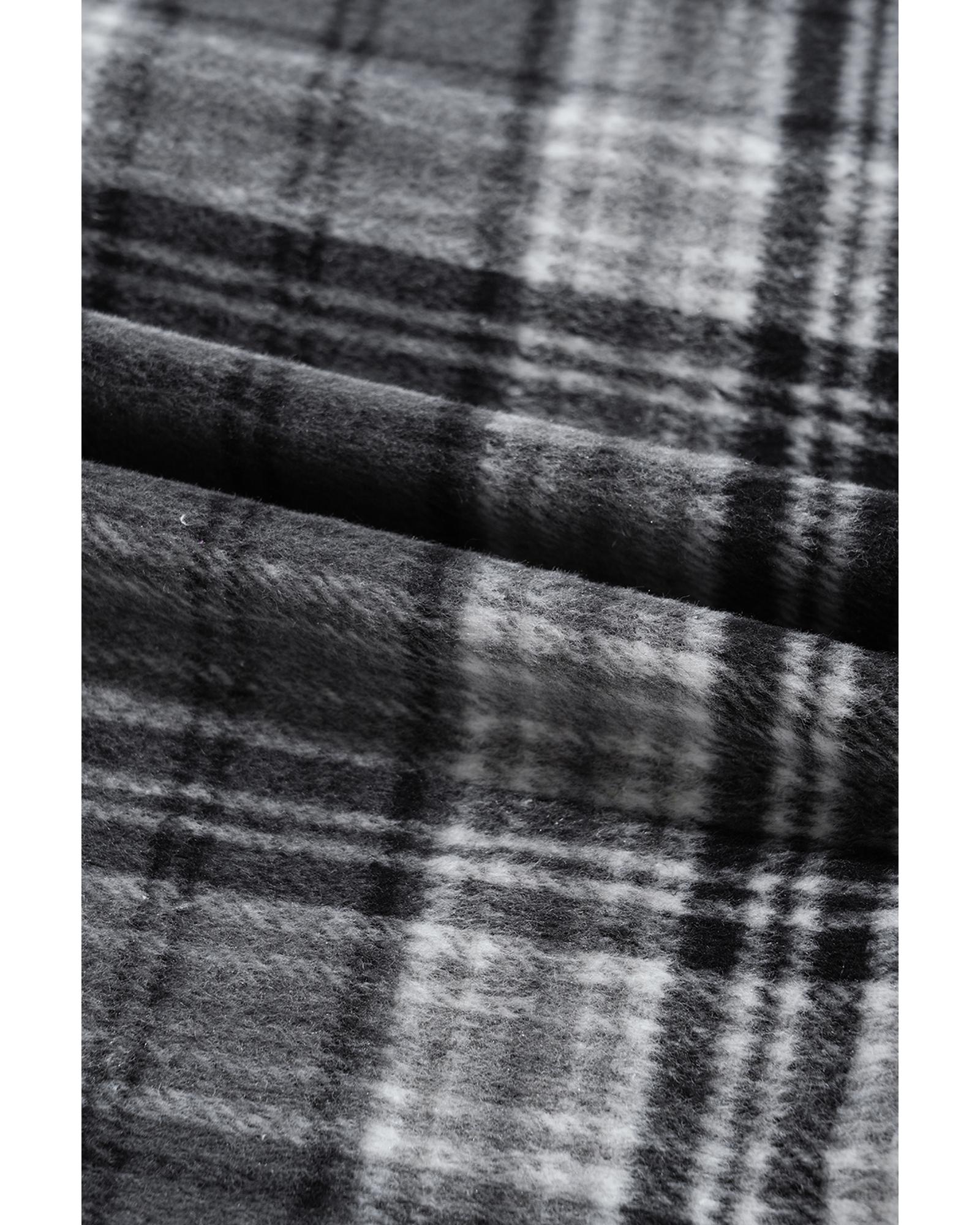 Black Plaid Print Flap Pockets Contrast Hooded Loose Shacket – XL