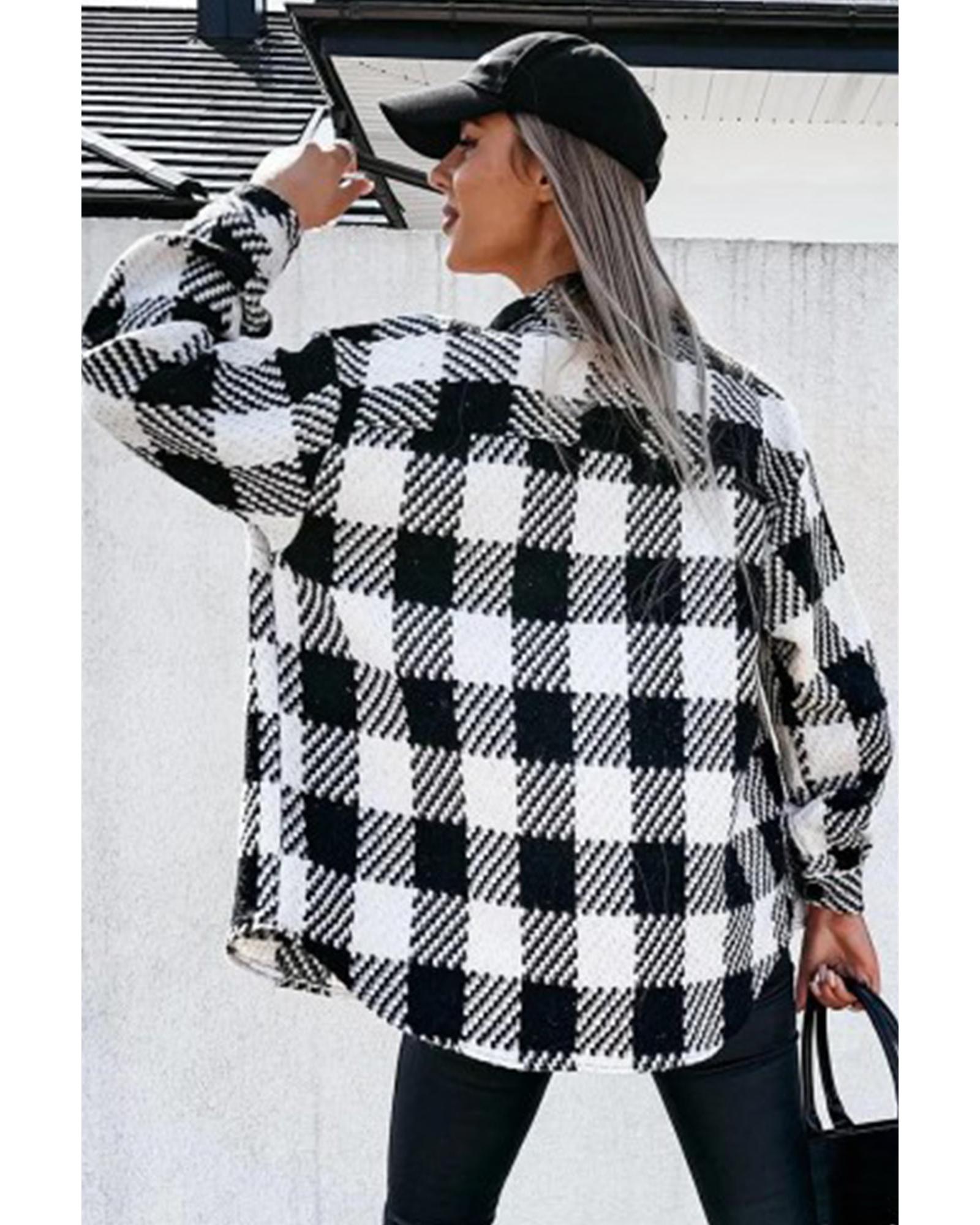 • Black plaid textured shacket