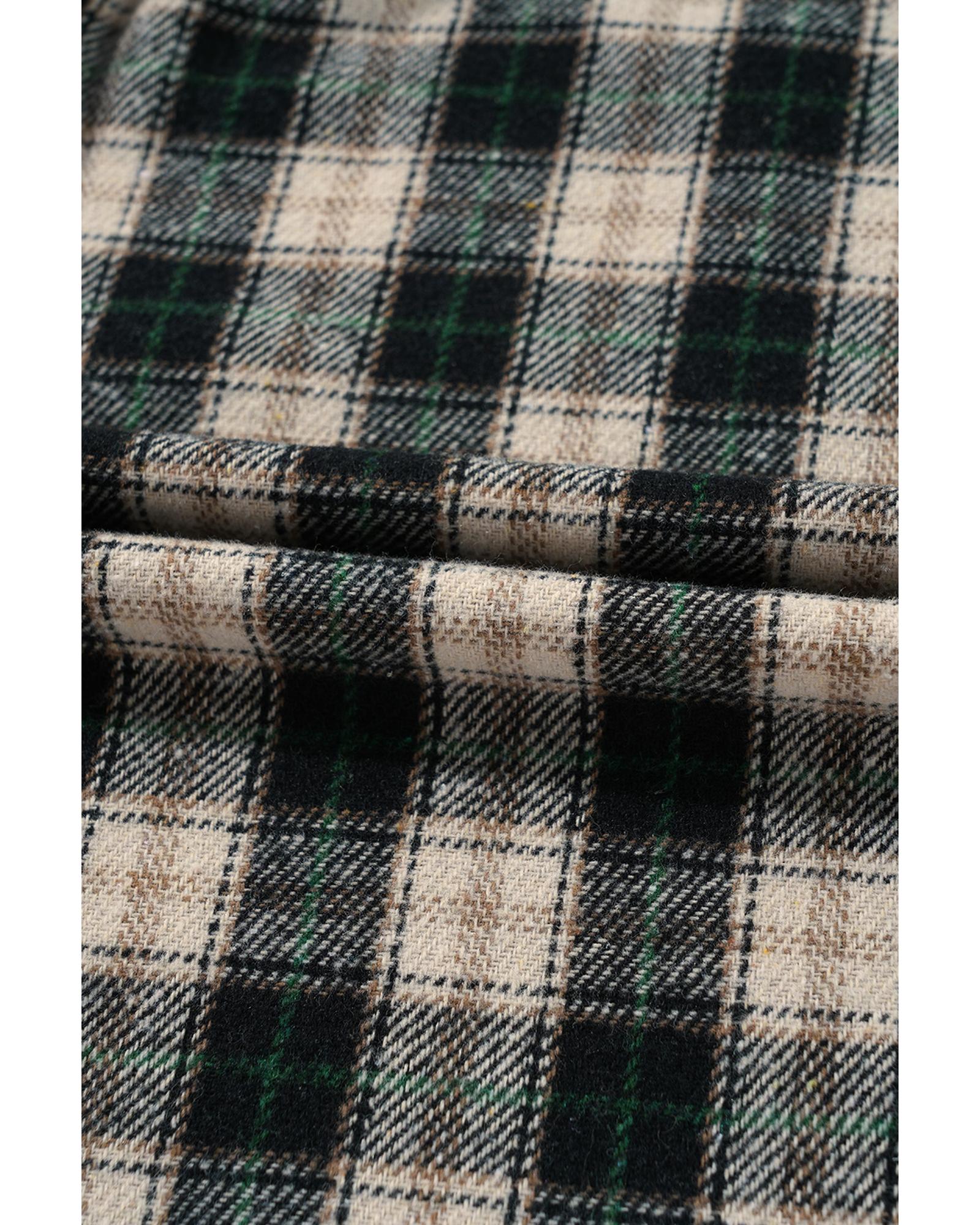 Multicolour Plus Size Plaid Print Collared Button up Jacket - 1X