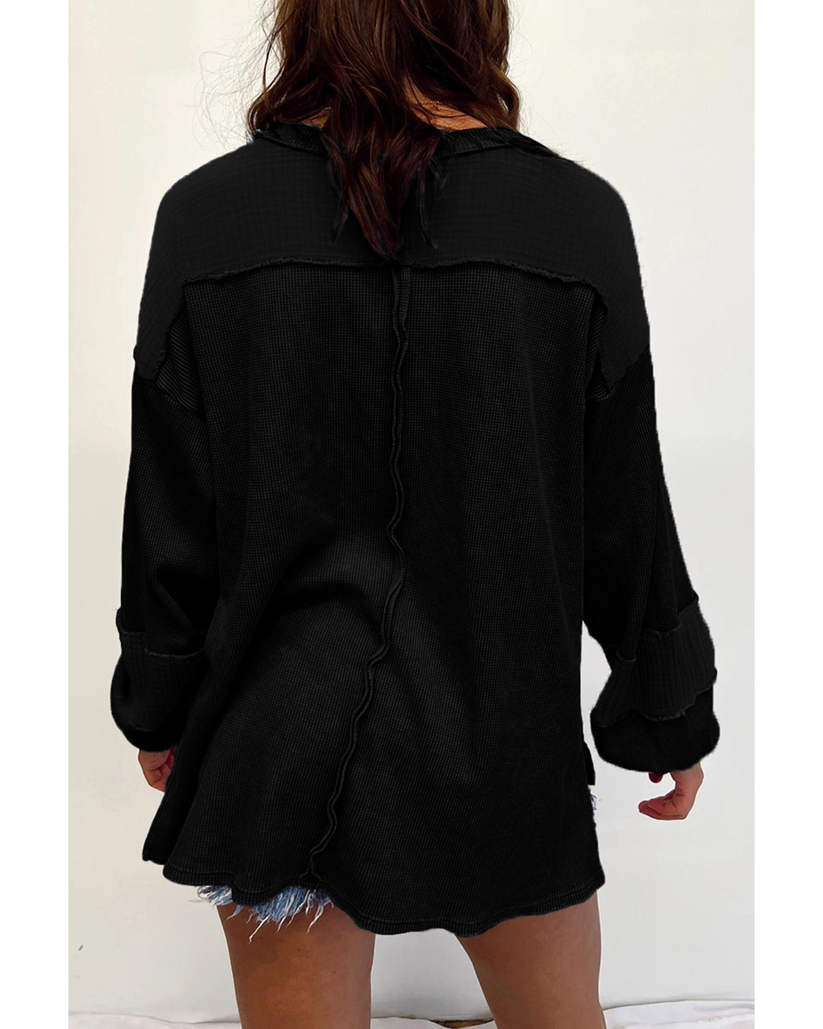 Black Plus Size Exposed Seam Crinkle Patchwork Top – 1X