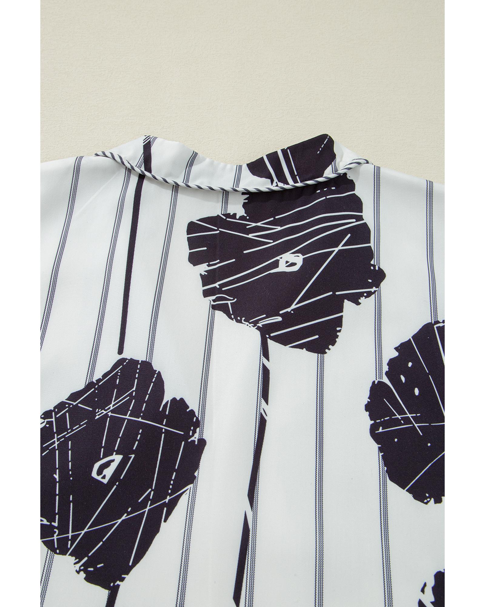Black Plus Size Floral 3/4 Puff Sleeve Lace-up Neck Mini Dress – 2X