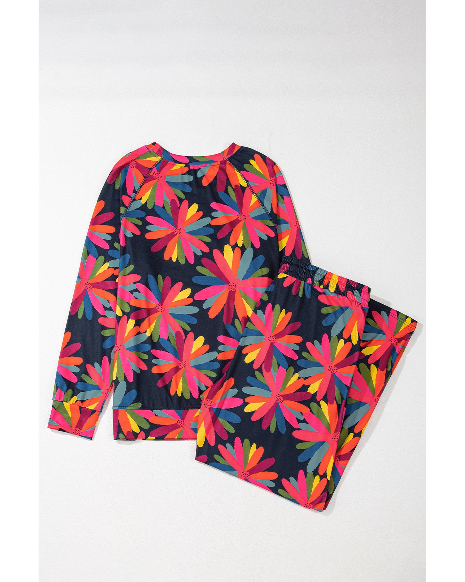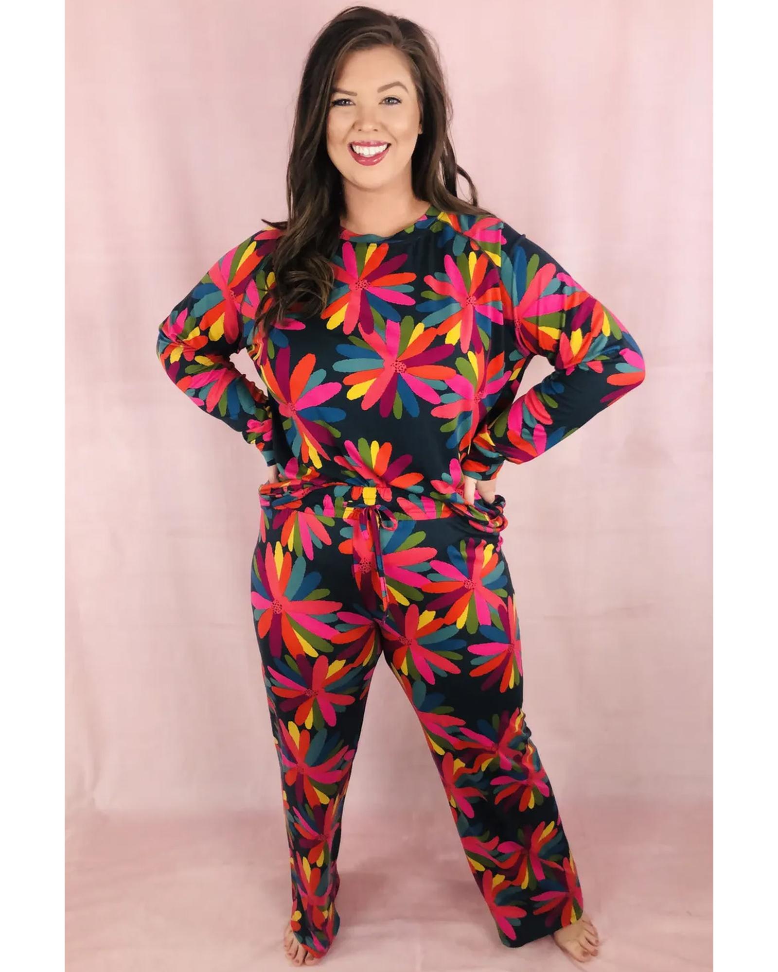 Black Plus Size Printed Long Sleeve and Pants Lounge Set - 2X