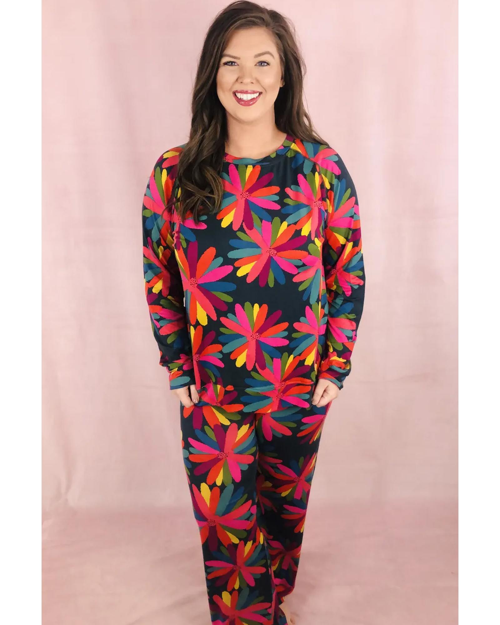 Black Plus Size Printed Long Sleeve and Pants Lounge Set – 1X
