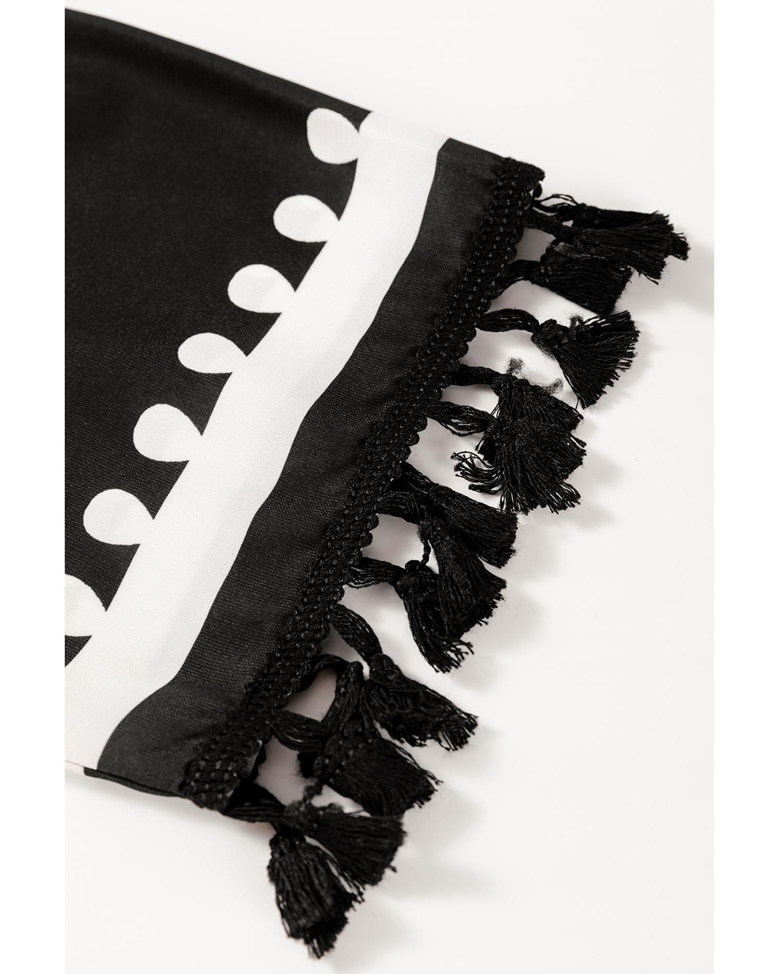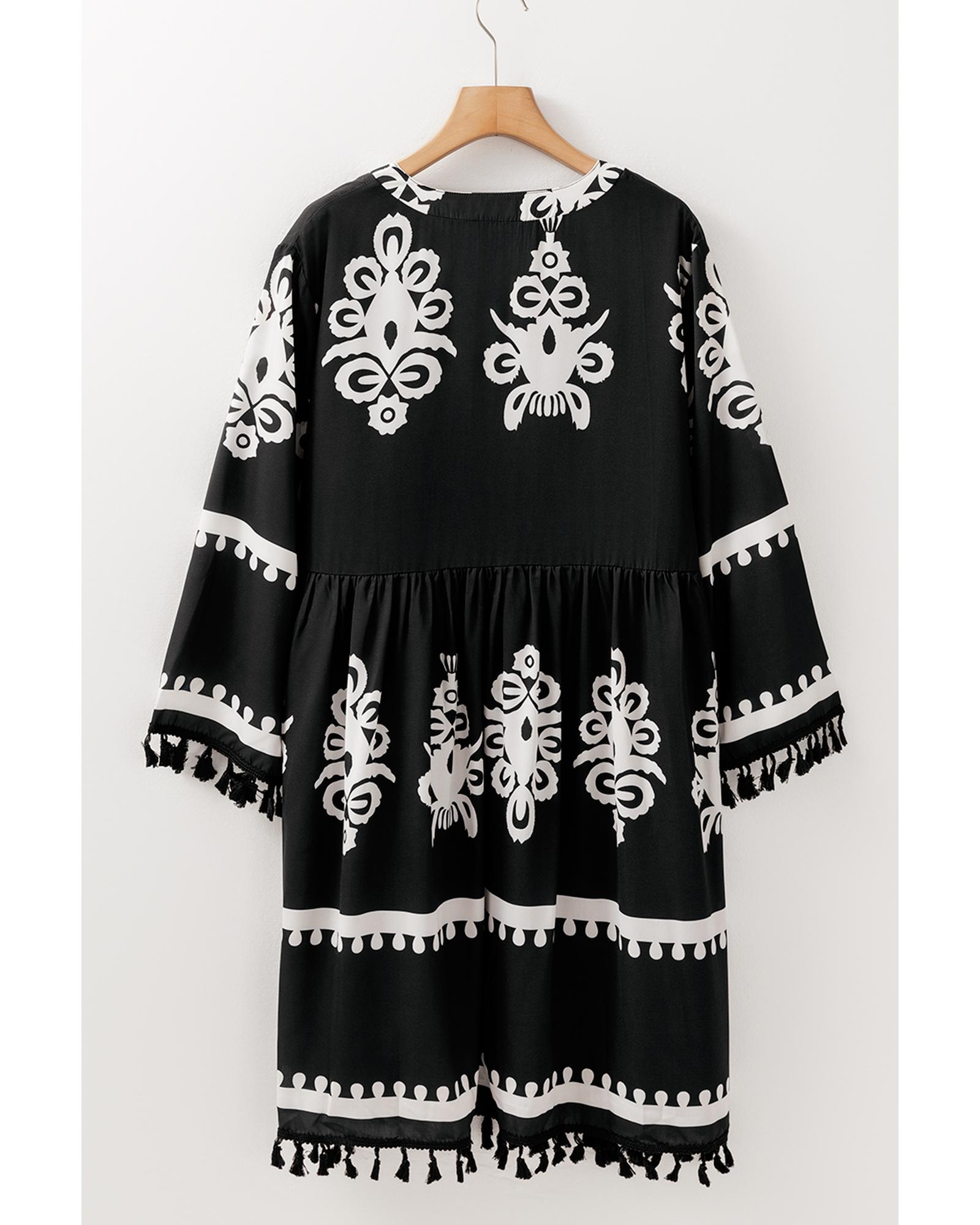 Black Plus Size Western Floral Print Fringed V Neck Dress – 3X