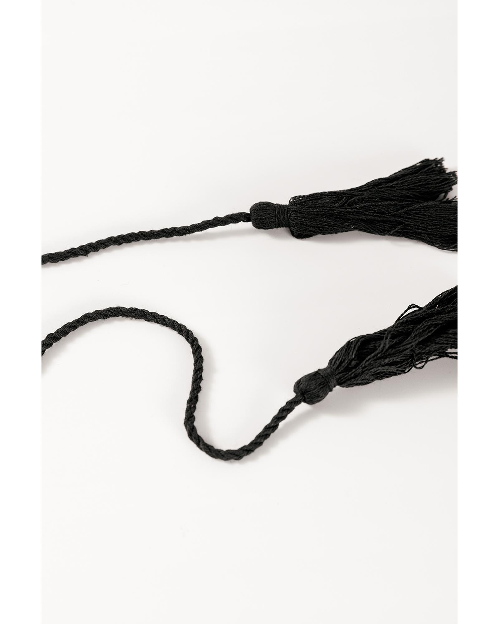 • Black Plus Size Western Floral Print Fringed V Neck Dress