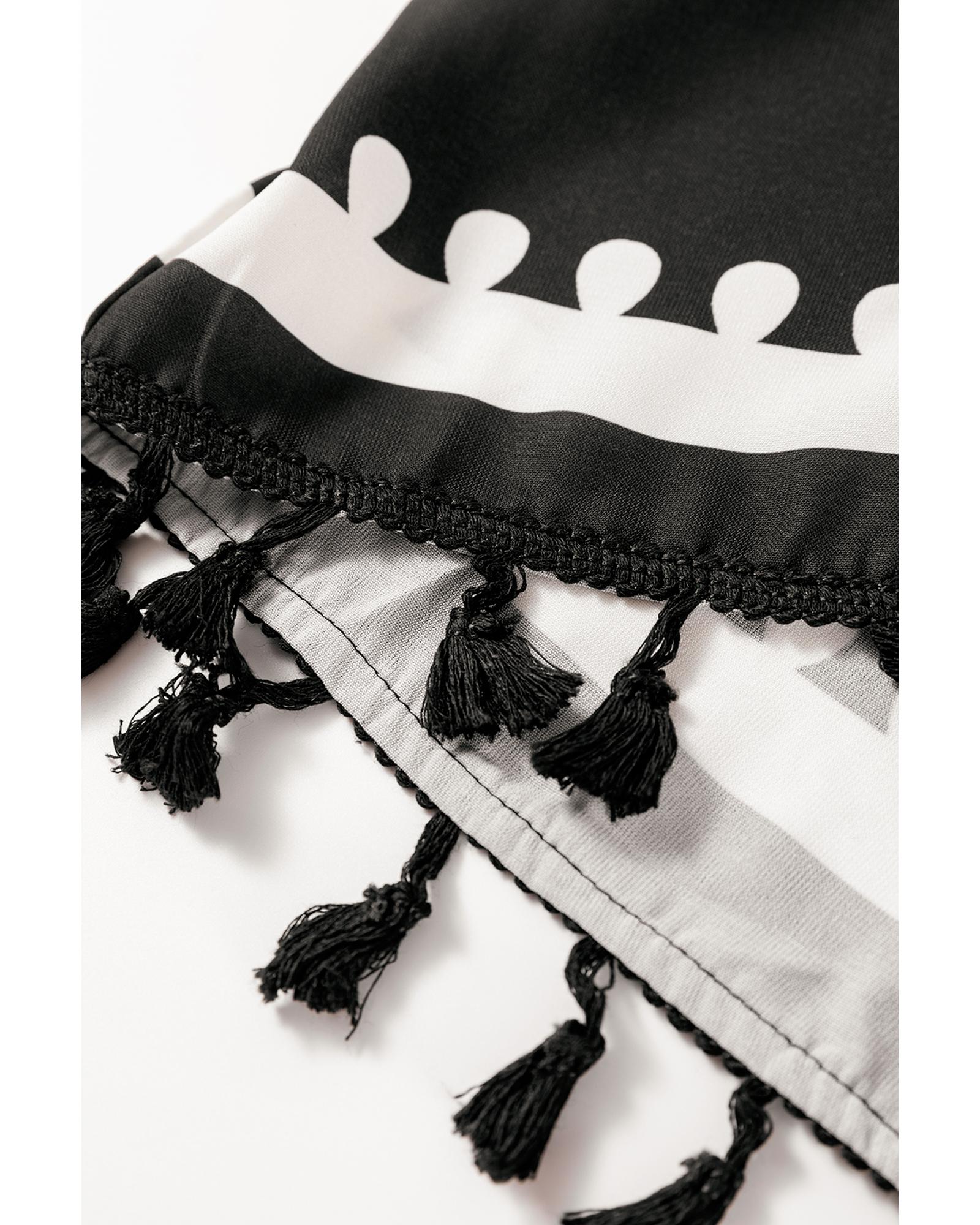 Black Plus Size Western Floral Print Fringed V Neck Dress – 4X